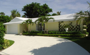 Wonderful sunny south side tripical property with fruit trees. Professionally renovated and decorated. Saturnia marble floors throughout and a newer kitchen with granite counters and a viking gas stove. Each bedroom has a separate new bathroom. Most every room looks on to a pretty pool,gardens and a large outdoor covered patio. Full two car garage. Great beach access right up the street.