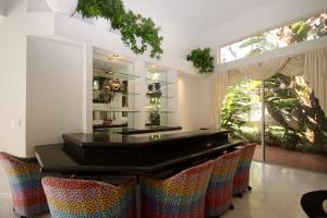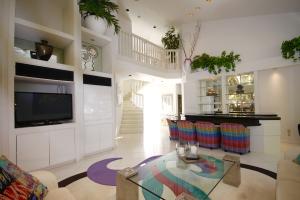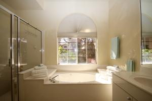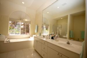 Very bright two story house with master down & large great room with bar. This 3 bedroom, 3 & a half bath home is perfect for entertaining or large family TV watching. The outside patio surrounds windowed areas and is lushly landscaped. One of the upstairs bedrooms is a second master & this area is perfect for visiting children or grandchildren.