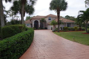 Impeccably maintained home on a full acre with many upgrades on PGA Estates course and across the street from the Municipal Palm Beach Gardens course. Membership in either course is optional. Amenities are minutes away while having a quiet family oriented gated and manned community entrance. Easy access to both the Florida Turnpike and Interstate 95 and only 20 minutes to the airport. One year old new roof, impact windows and French doors all around, wood floors replaced all carpeting. New AC, city water, hybrid H2O heater and screened saltwater pool with removable panels. Custom landscape lighting and the 4 zone sprinkler system uses well water. Low HOA that includes high speed internet and cable TV, just $190 / month.