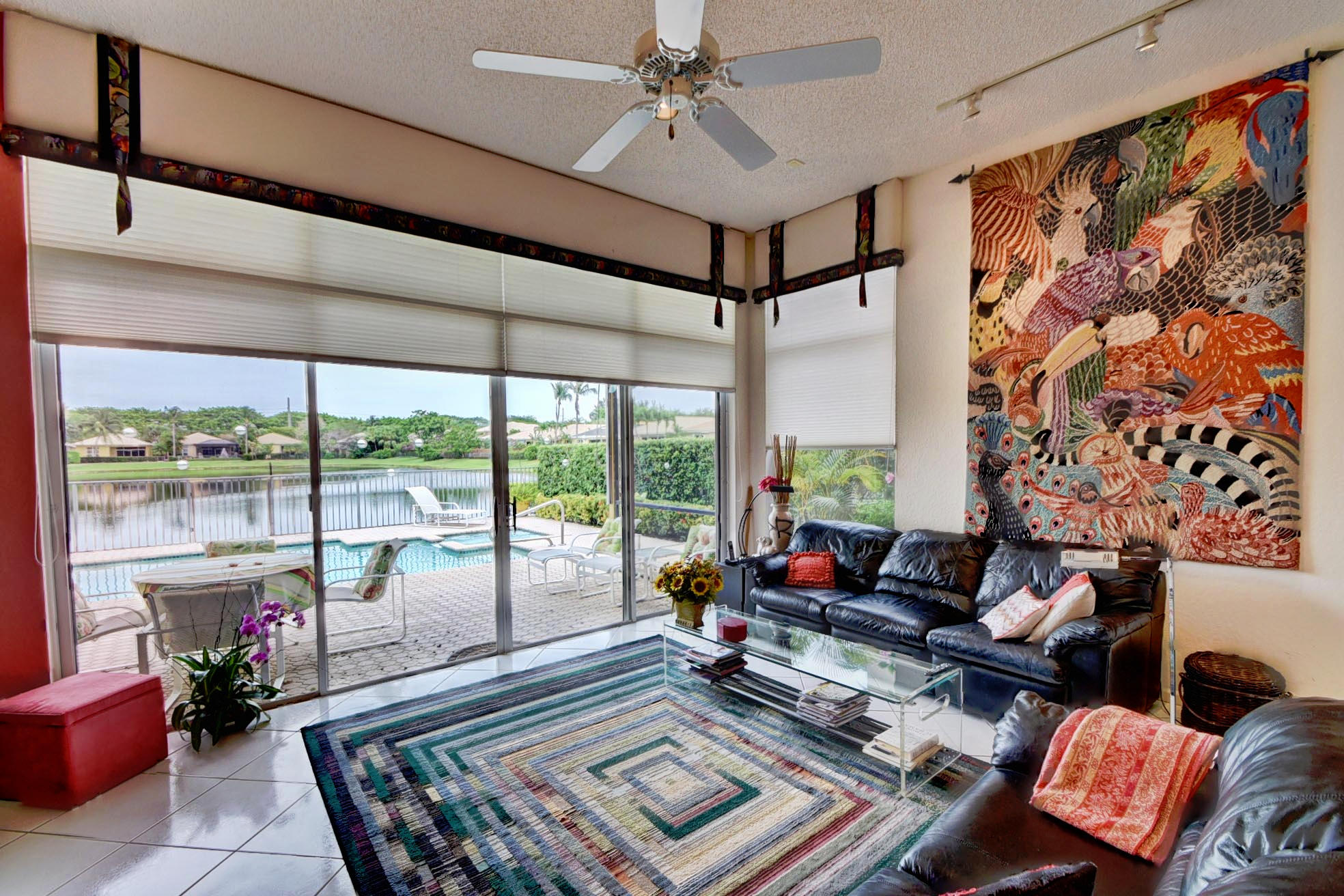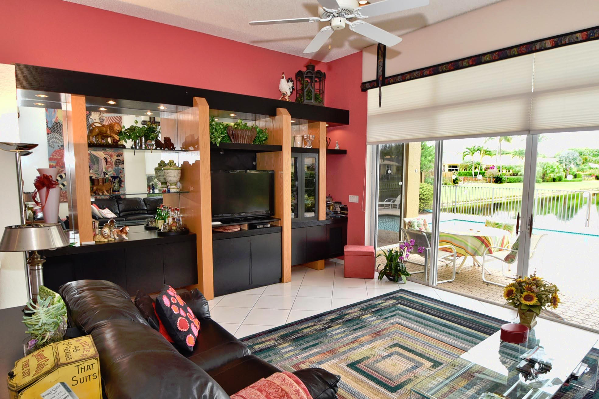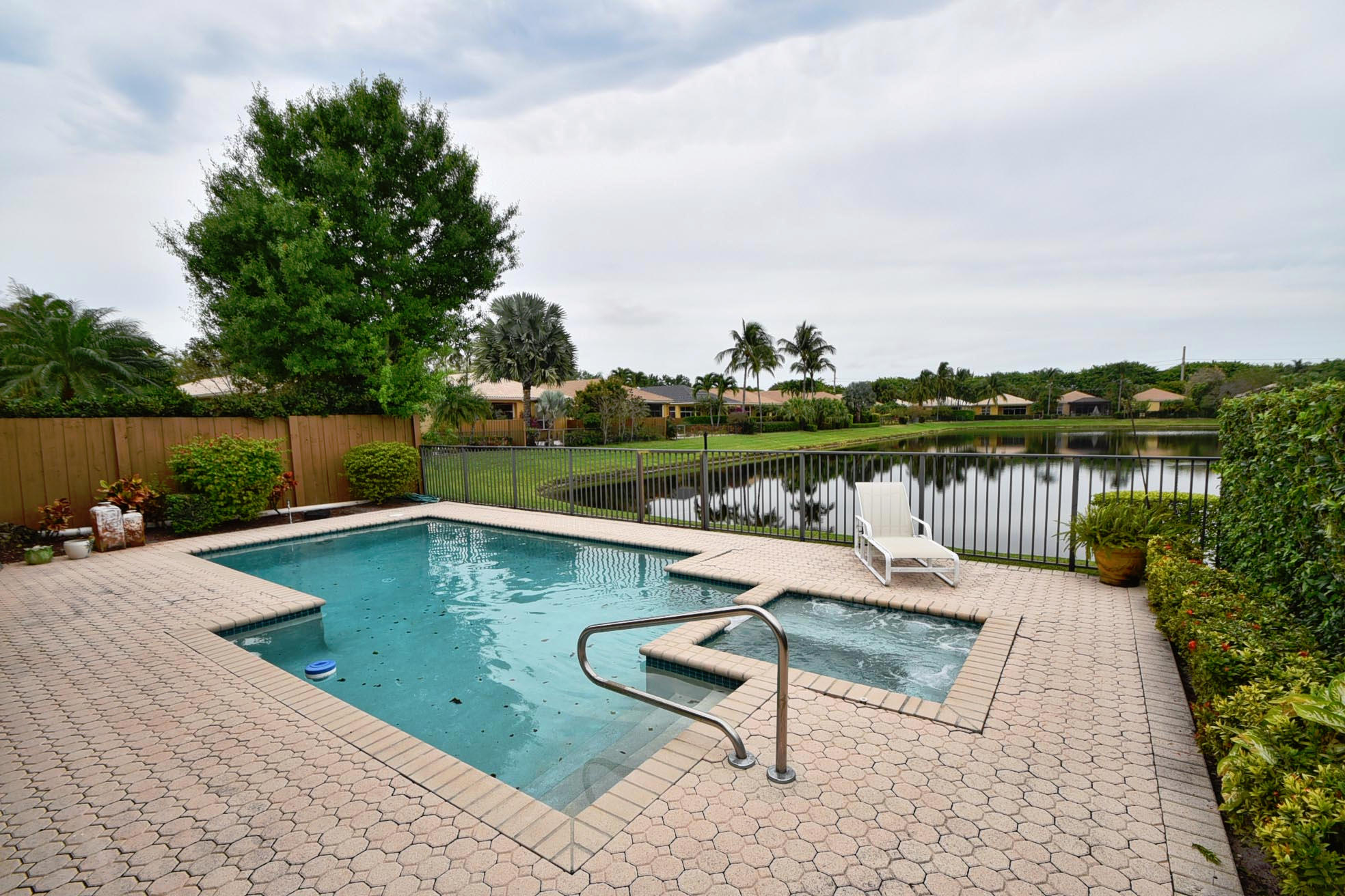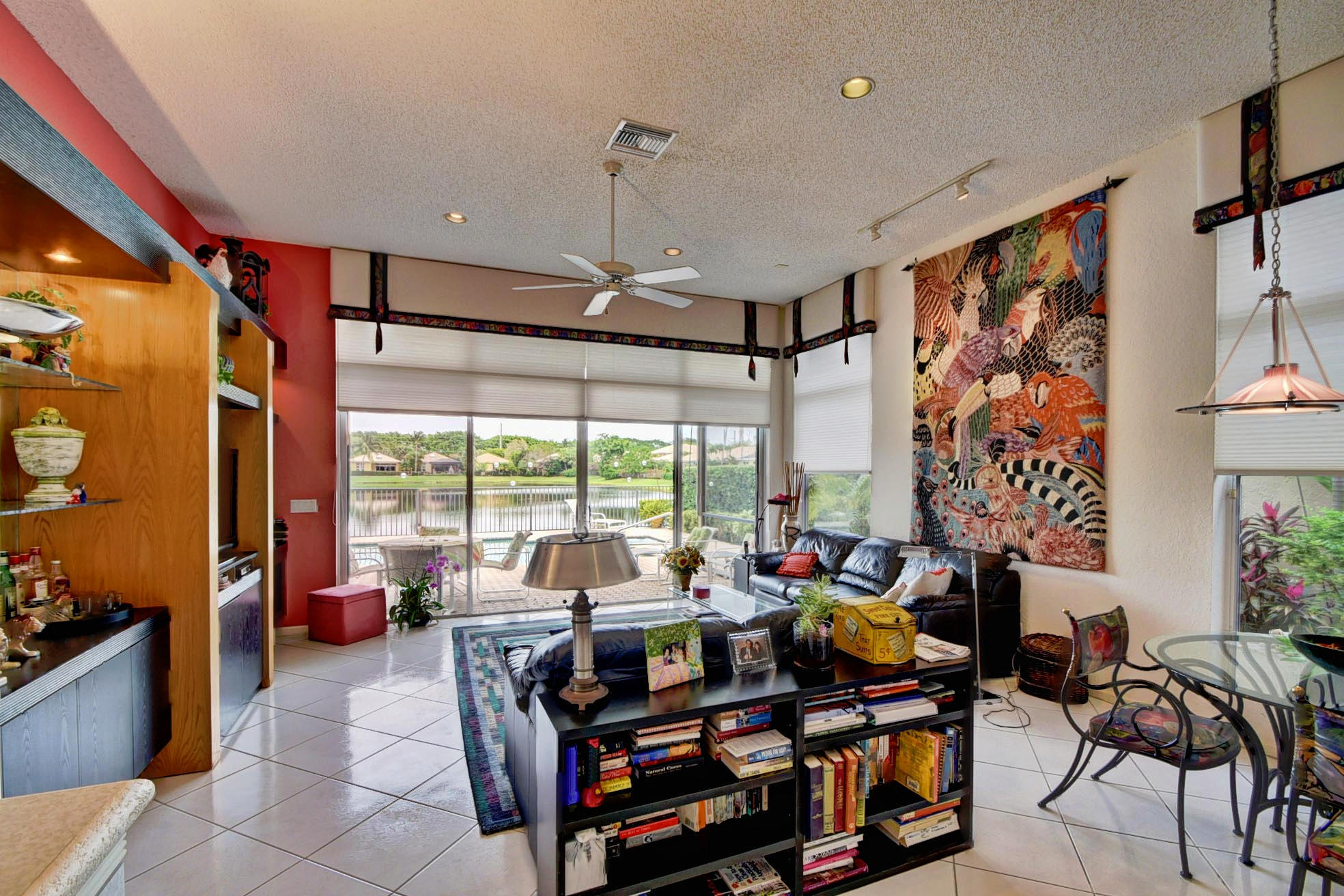 Desirable expanded 1 Story Devon model on Point lake lot. Open kitchen/fam room plus living room. 3 bed, 3 baths. granite kitchen, newer ac 2012. Silhouettes in LR, DR, Master. Light and Bright. Built-in office in 3rd Bed. Outfitted Master Closet. Diamond Brite Pool. Retractable awning on patio. Extra Storage in Garage. Must Be Seen!