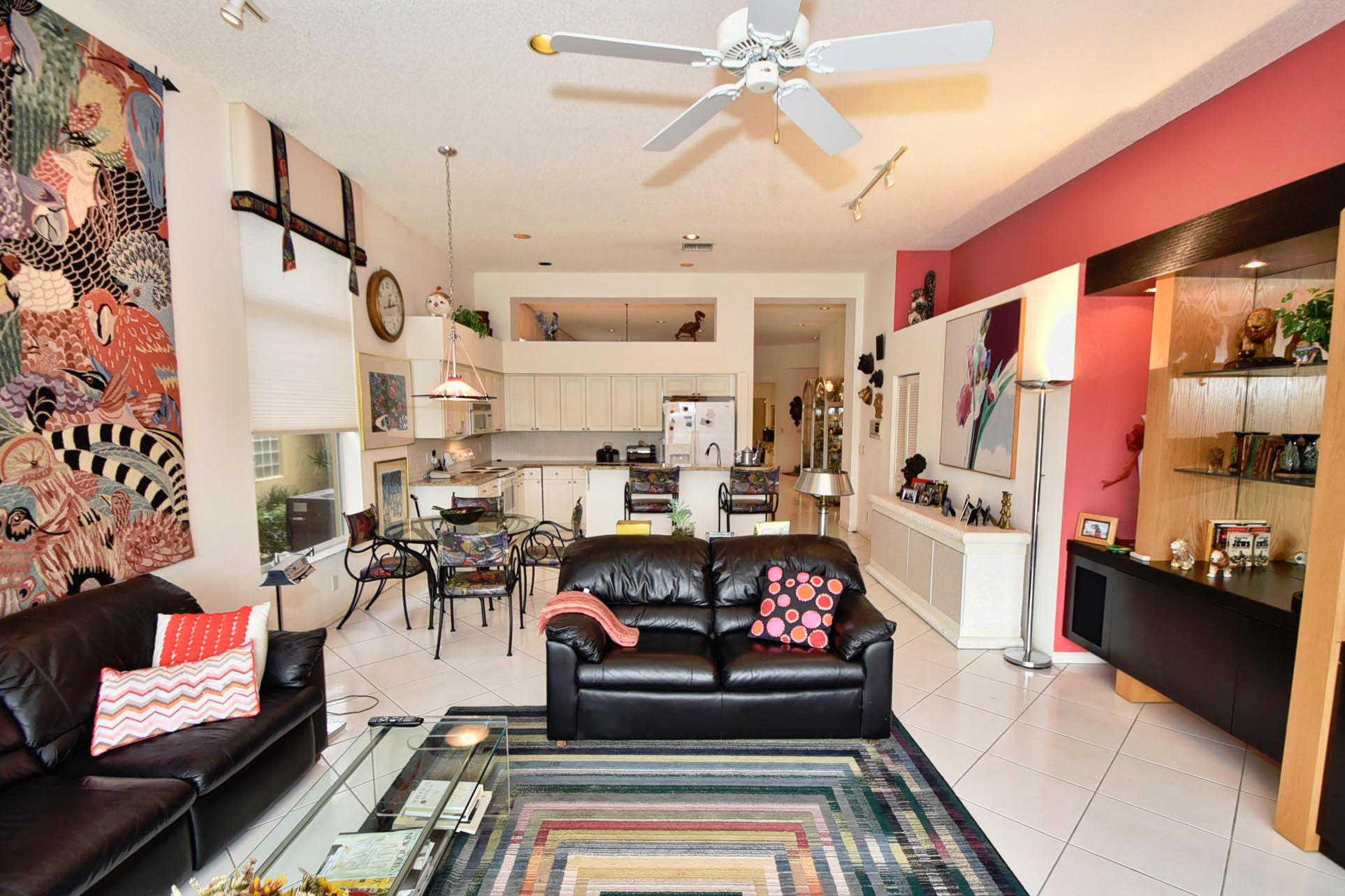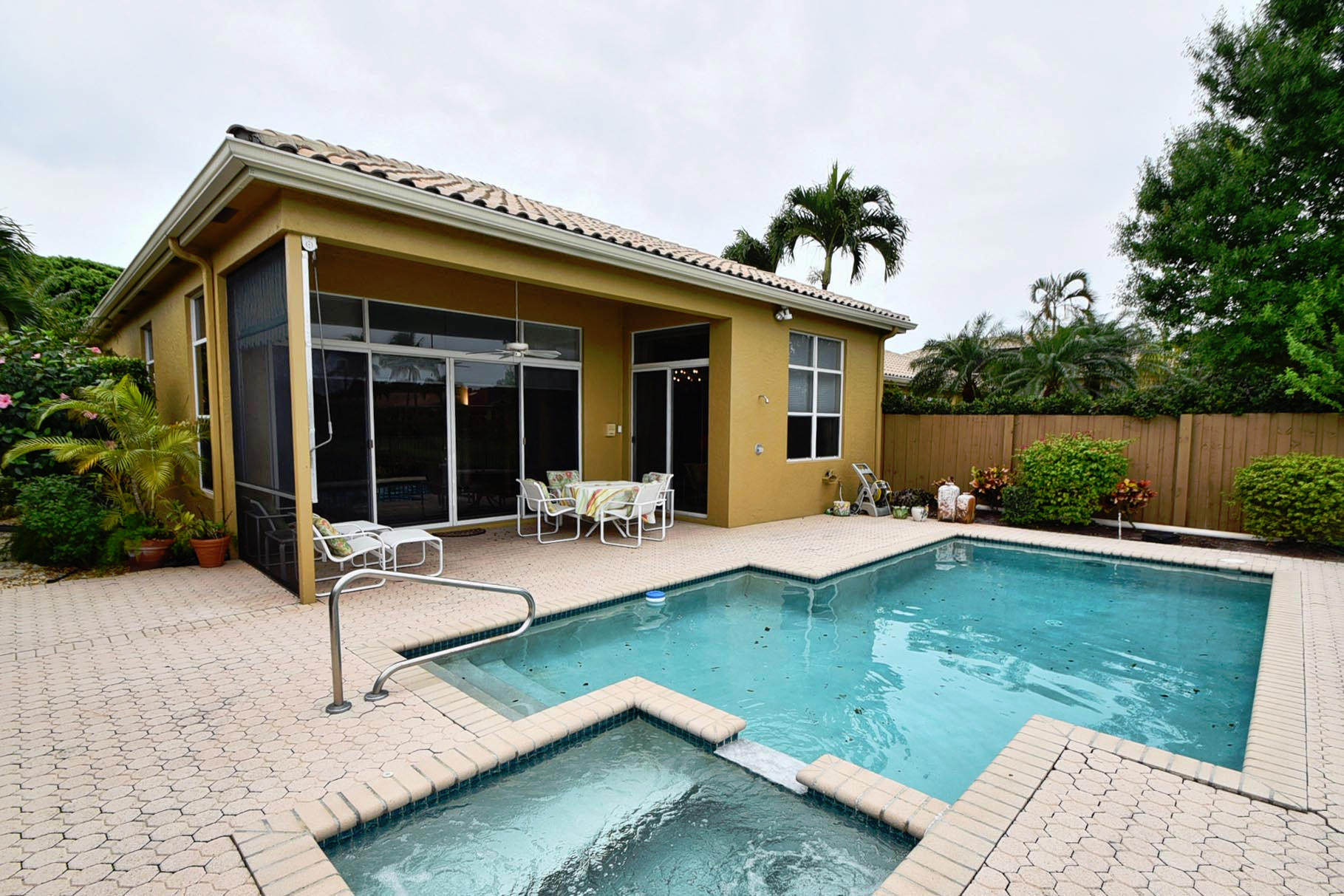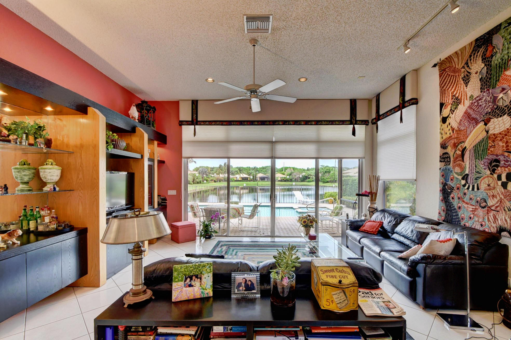 Desirable expanded 1 Story Devon model on Point lake lot. Open kitchen/fam room plus living room. 3 bed, 3 baths. granite kitchen, newer ac 2012. Silhouettes in LR, DR, Master. Light and Bright. Built-in office in 3rd Bed. Outfitted Master Closet. Diamond Brite Pool. Retractable awning on patio. Extra Storage in Garage. Must Be Seen!