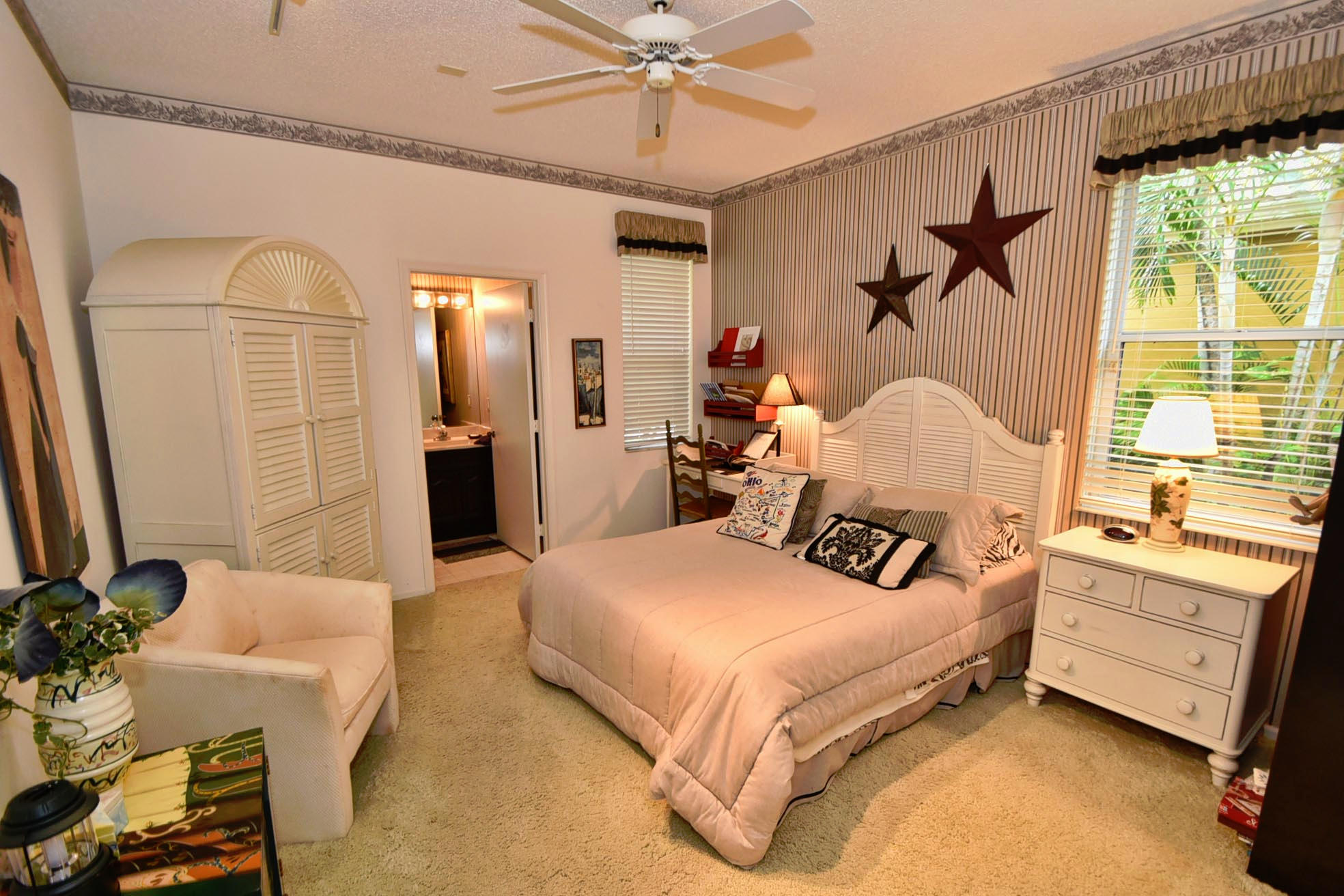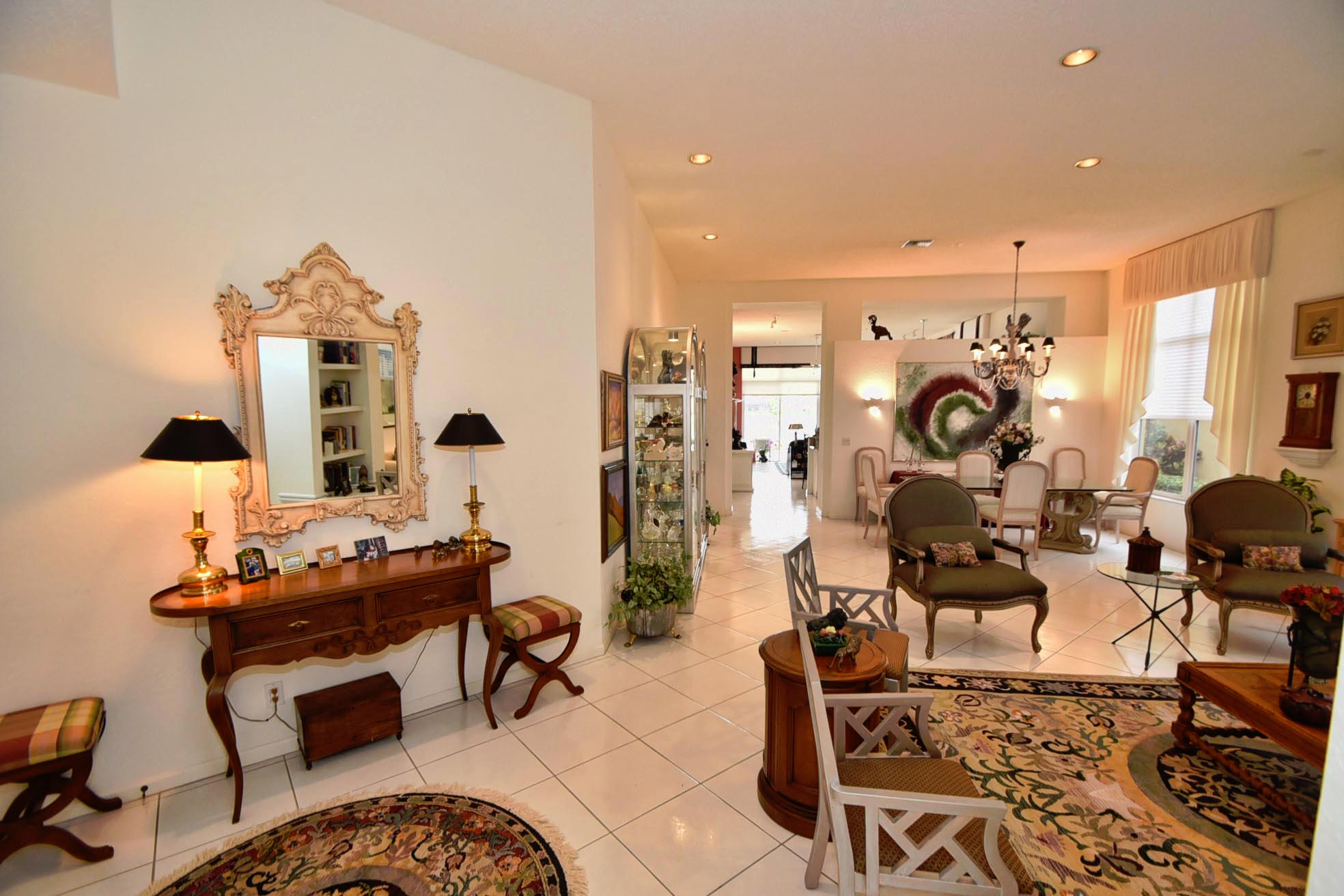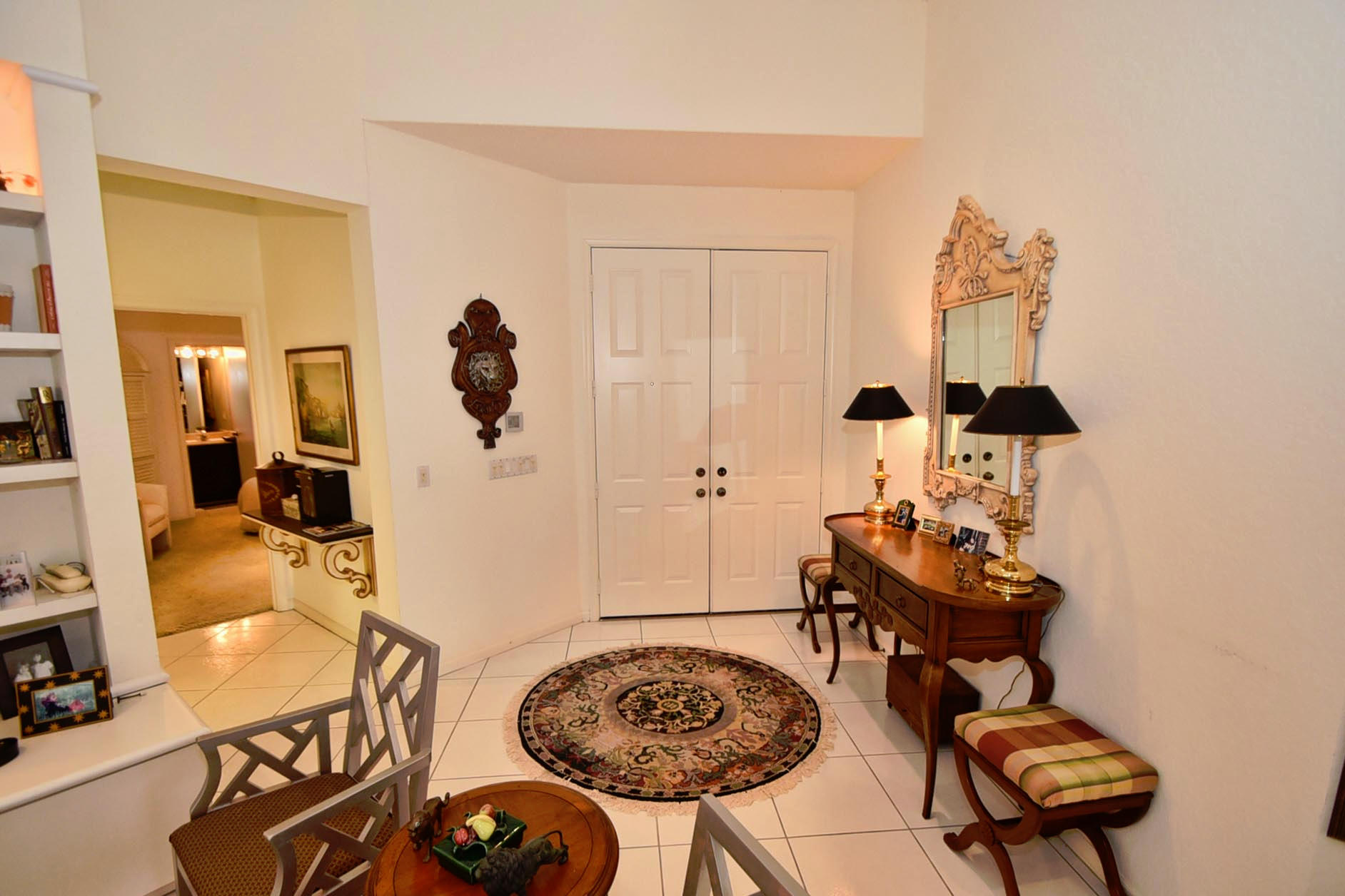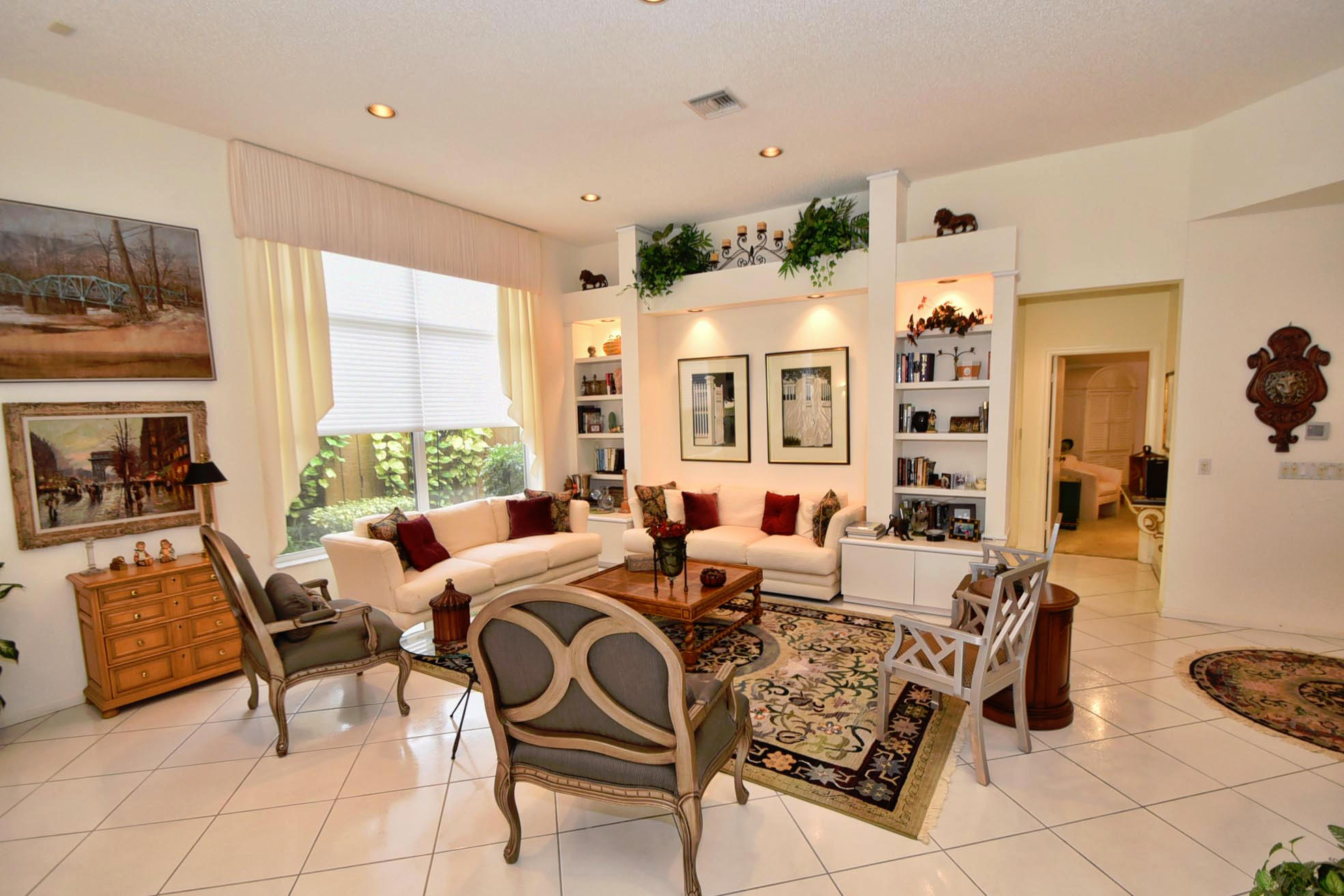 Desirable expanded 1 Story Devon model on Point lake lot. Open kitchen/fam room plus living room. 3 bed, 3 baths. granite kitchen, newer ac 2012. Silhouettes in LR, DR, Master. Light and Bright. Built-in office in 3rd Bed. Outfitted Master Closet. Diamond Brite Pool. Retractable awning on patio. Extra Storage in Garage. Must Be Seen!