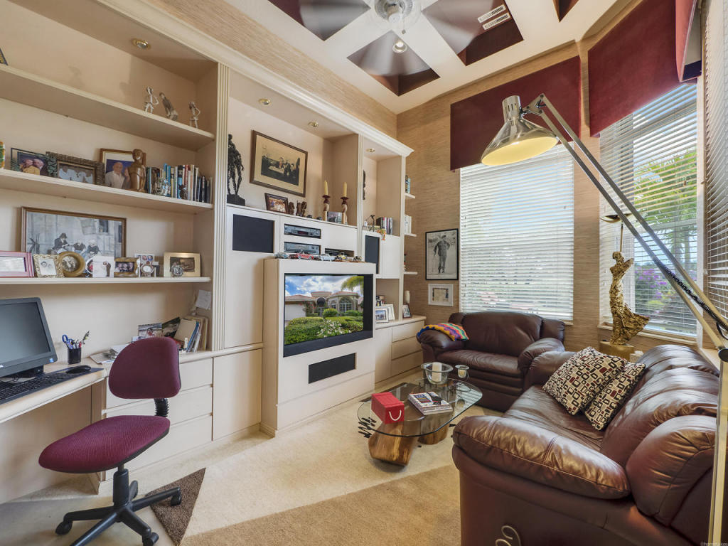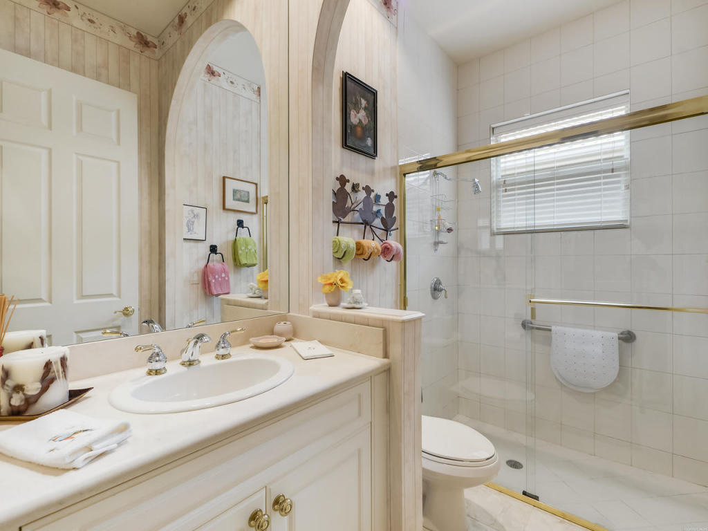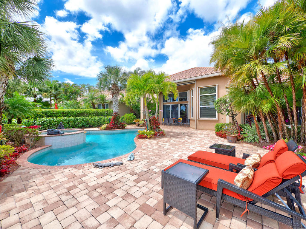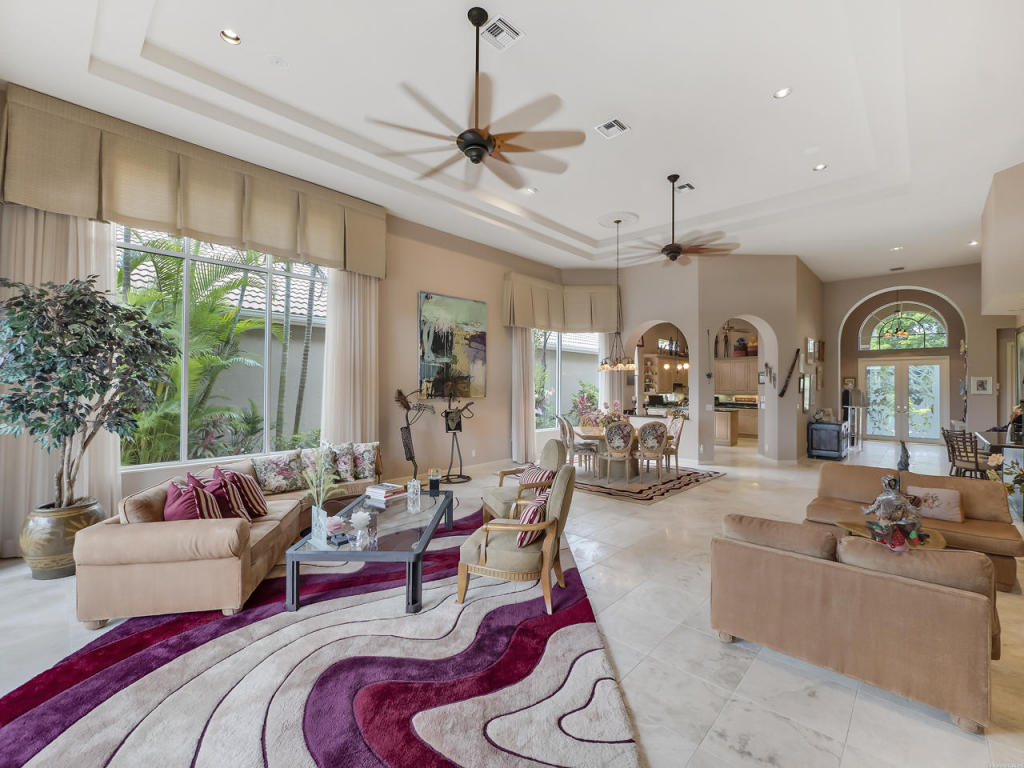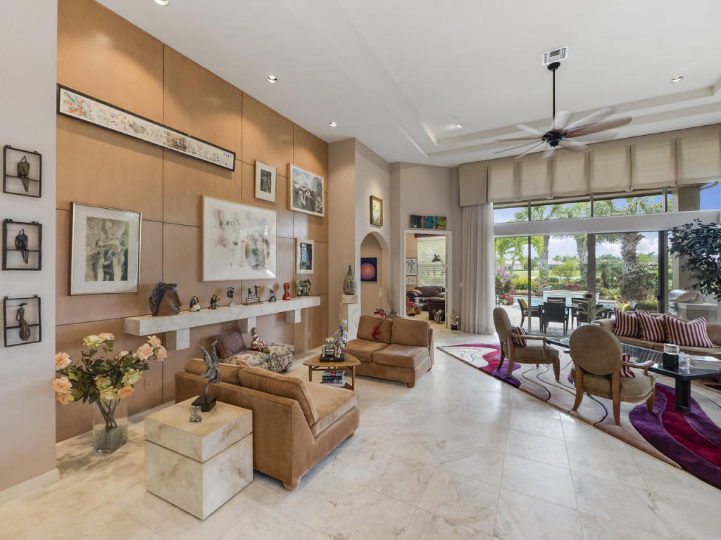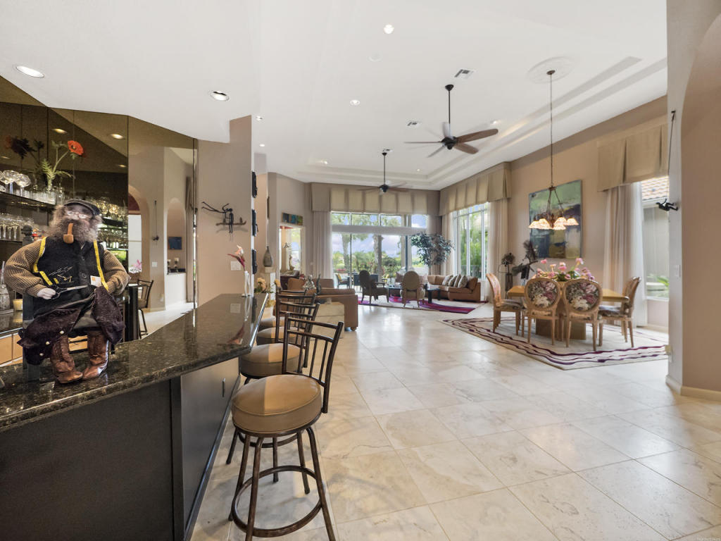 Every once in awhile a special home comes along. Decorated by Audrey Goldman, this is one of those with it's luscious landscaping & many upgrades. From the marble floors, speakers throughout, gorgeous kitchen with upgraded cabinets & wet bar you will be impressed. This great room floorplan allows for many furniture configurations. The owner's suite includes access to the pool/patio area, double walk in closets with built in cabinets, double coffered ceiling, private water closet with bidet, corner roman tub, double sinks plus vanity area, step in shower and marble floors in the bath. One guest room is ensuite with a private atrium, walkin closet & bath. The 2nd guest room is light & bright & includes a walk up closet. This room shares a bath with daytime guests. Please see the supplement.