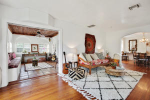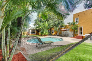 The well-known "Bell House" in historic Southland Park provides a relaxing sanctuary from today's hectic lifestyle. The mission revival courtyard-style pool home with garage and guest house was originally built by RJ Blanford as his personal home. It is situated on a large corner lot 1.5 blocks from the Intracoastal Waterway. The home boasts many special architectural features from the magnificent intricately carved mahogany doors to the beautiful original Palladian windows. You will become enchanted with the archways, hardwood floors, pecky cypress ceiling and limestone working fireplace. Timeless surprises like linen cupboards, built-in bookshelves and claw-foot tub evoke nostalgic memories. Each interior window contains custom-fitted wooden plantation shutters and exterior windows are