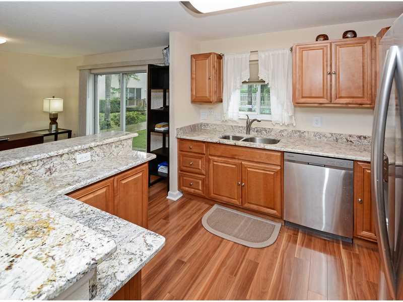 3 bedroom 2 bath townhome with garage. Large open concept kitchen with granite counter tops. Wood flooring throughout the living area. Large master bedroom with large walk in closet. Unit over looks the tranquil community pool.