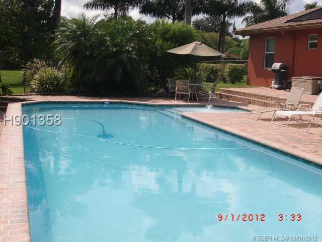 SENSATIONAL 4BR + OFFICE CUSTOM BUILT HURRICANE RESISTANT ACRE HOME. POURED CONCRETE WALLS, IMPACT GLASS & WELDED IRON STRAPS TO TRUSSES, MADE TO WITHSTAND 200MPH WINDS. HUGE SOLAR HEATED POOL W/ FOUNTAIN, LOTS OF BRICK PAVERS, FIREPLACE, FRENCH DOORS, GR ANITE KITCHEN, STAINLES STEEL APPLIANCES, BOSE SOUND SYSTEM, BIG SCREEND PORCH W/ HOTTUB FOR GREAT PARTIES, W/ CUSTOM BUILT INS, FENCED, TIKI HUT & MUCH MORE! NEW A/C,FRESH PAINT, PRIVATE DEAD END RD. NOT A SHORT SALE OR FORECLOSURE! HURRY! BEAUTIFUL!