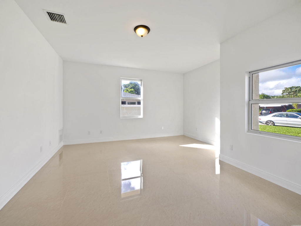 Every once in a while a special property in a special location becomes available and if you are looking for the ideal location in Lake Clarke Shores this may be it. With four bedrooms and three bathrooms this new custom home is remarkable in every way. Tucked away on a quiet street with close proximity to both downtown West Palm Beach and Lake Worth. The open floor plan features a split bedroom plan with the oversized 4th bedroom at the front of the home. Set up today as a den it would be very simple to wall in the closet if one wanted a true 4th bedroom. Luxurious finishes throughout with sparkling porcelain floors in every room; no carpet to worry about. Custom gourmet kitchen open to the living areas features wood cabinetry, granite countertops and gleaming stainless steel appliances.