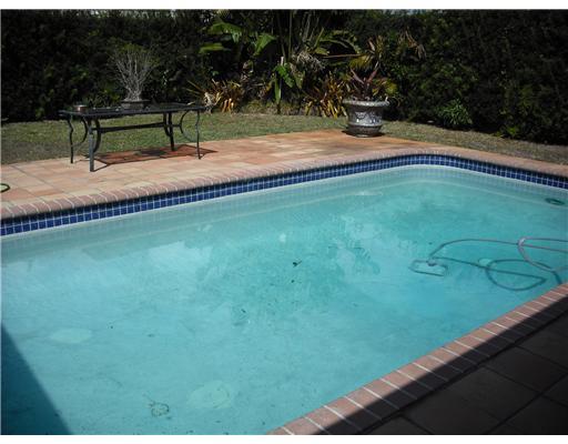 Excellent family home located in a nice neighborhood & kid friendly. Open floor plan with a completely renovated kitchen complete with stainless Steel appliances,granite counter tops and back splash. There is ceramic tile throughout except for the master bedroom which has wood flooring. The exterior front windows have detailed framing and there are columns by front entry. Surrounding the pool there is a large tiled patio area and an open yard.