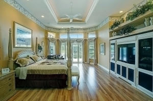Beautifully appointed estate home in move-in condition. With 276 ft of point lot water frontage. Newer roof replaced 5 years ago, 4 ac units, water softener, cul-de-sac location, 5 true bedrooms one is a junior suite, + library/office + game or media room + children's play room and new wood floors in childrens wing Large Master with sitting area, Solar heated and saltwater pool + spa, House has hurricane protection on all windows and doors. French doors thru out/cherry wood kitchen cabinets with granite tops and more+