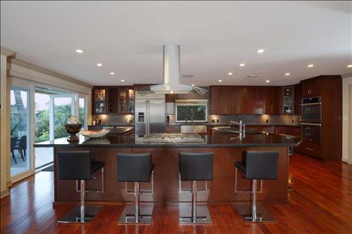 Intracoastal Views 3rd Home from the Point. 100 Ft Water fits 80 Ft Yacht. Major Renovation a few years ago with Quality Everywhere. Brazilian Cherry Wood Floors Throughout. Impact Glass. New Roof. Open Gourmet Kitchen has Custom Wood & Glass Cabinetry, G ranite Tops, Wine Cooler, Stainless Steel Appliances, Gas Cooking, Island Counter Seats Four Barstools. Onyx & Marble Baths. Integrated Sound & Flat Screen TVs. Rebuilt Seawall has Wide Cap. Boat Lift. Paver Deck & Fire Pit. Brick Drive. Walls of Glass.