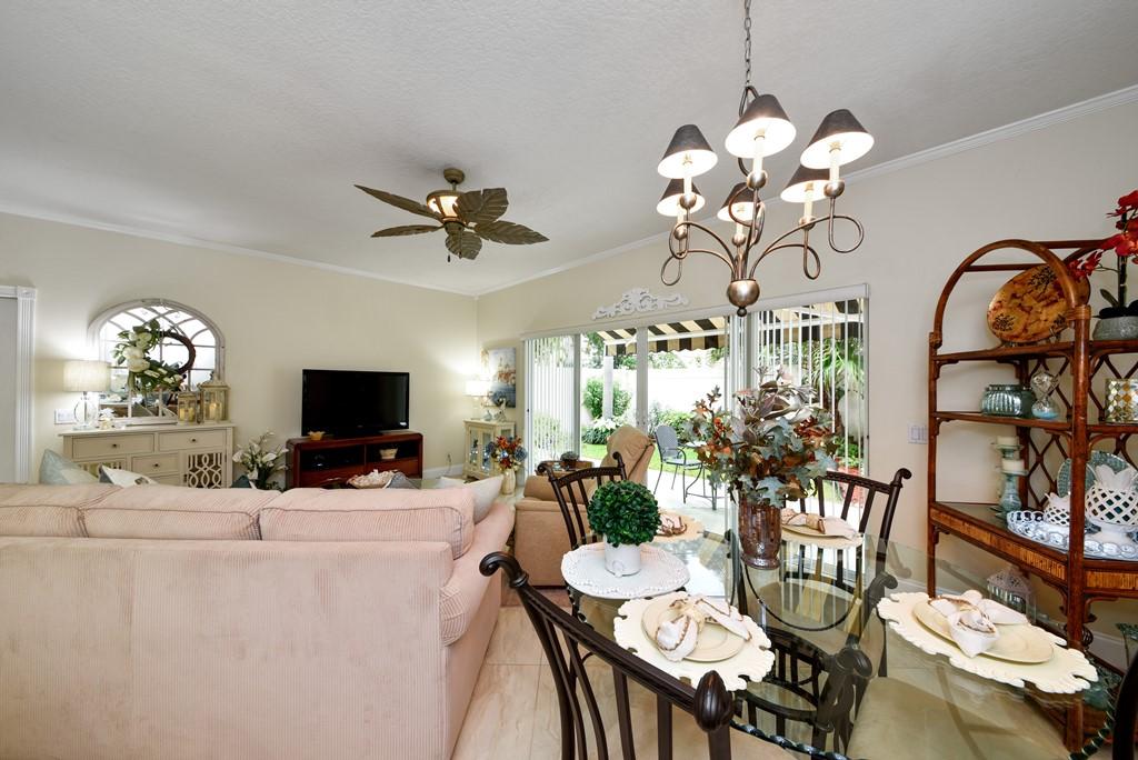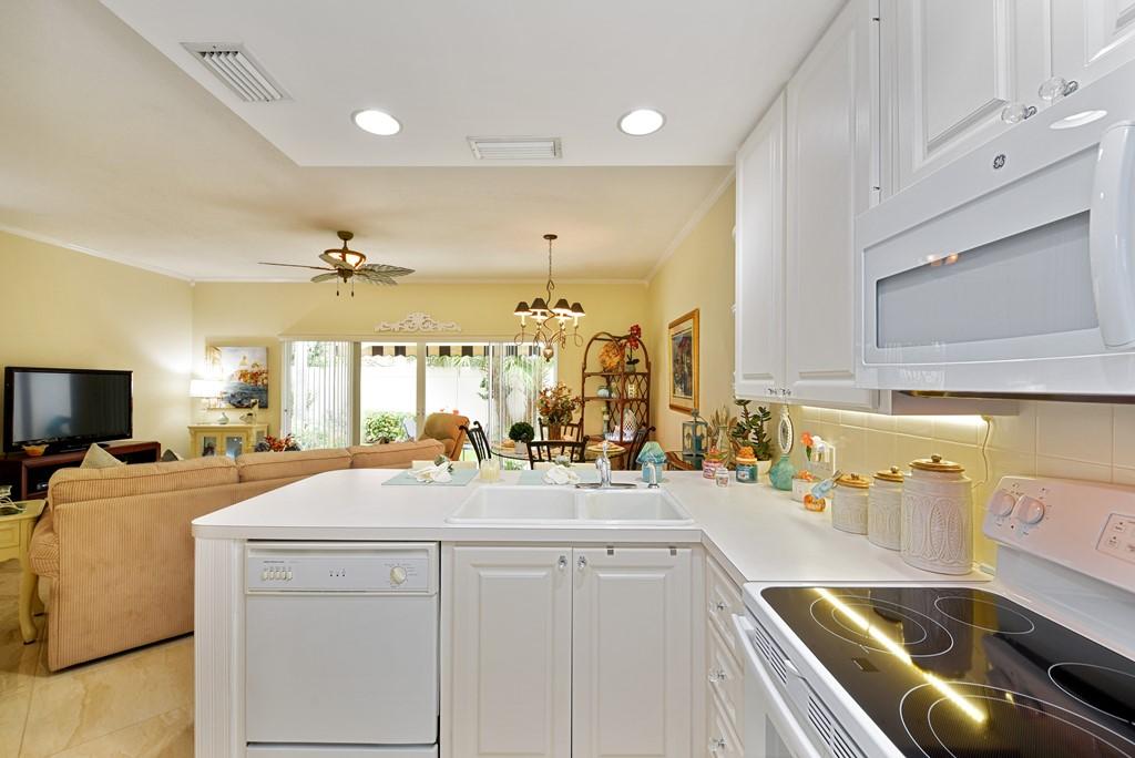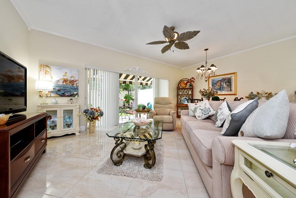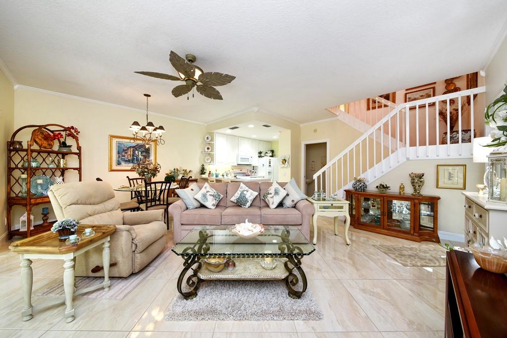This Courtyard Townhouse ''Newport'' Model is in Fantastic Condition! It's in Riverwalk, A 5 Star Resort Style Community! That Feeling is only Enhanced when you see the Tropical Covered Entry with its Lush Plantings & Walkway that leads to a Entry that has a Gorgeous Leaded Glass Hurricane Impact Front Door that when opened takes you to the Stunning 24 inch Porcelain Tile Floored Living-Dining room Combination with a Decorator Dining Fixture & Sliding Glass Doors that open to an Awe-Inspiring Courtyard Garden with Tropical Plantings, Shrubbery & Lush Landscaping with a Privacy Wall & a Fantastic Patio with a Charming Retractable Awning! It's like your own Private Villa at a Luxury Resort! The Open Tiled Kitchen has a Newer Kenmore Double Door Refrigerator, G.E. Microwave & Ceramic Topped