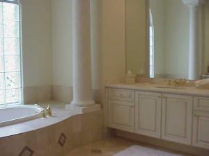 This fine estate of Mediterranean design offering 4 bedrooms and 4 1/2 baths is immaculate, spacious and open with attention to detail. Enter through wrought iron gates into a tropical paradise - a beautiful courtyard featuring a heated freeform pool and spawith lush landscaping and a built-in grill perfect for entertaining or relaxing. Enjoy the elegance of stately features throughout - Saturnia marble floors, neutral upgraded carpeting, volume & tray ceilings, crown moldings, faux-painted walls, a charming gourmet kitchen with 42" oak cabinetry and granite countertops, an inviting Family Room with a built-in entertainment center, a wet bar with granite counter, front door video surveillance system and so much more!