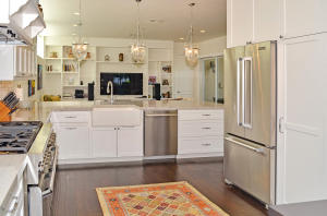 5 bedroom courtyard home on quiet cul-de-sac with lake views featuring remodeled gourmet kitchen including Thermador gas stove, white cabinetry, stainless steel appliances and farm sink, beautiful wood floors throughout downstairs, master down and 3 bedrooms upstairs. Separate guest house with bath and morning bar. The information herein is deemed reliable and subject to errors, omissions and changes without notice. All measurements are approximate.