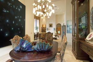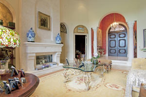 Exquisite 3 Bedroom plus wood-paneled library with shelves to ceiling in one level lakefront home on the fairway. Enormous master bedroom suite with 3 master closets, 2 master baths and soaring ceilings throughout the house.