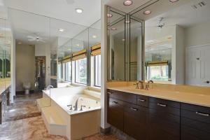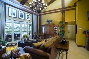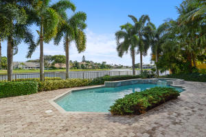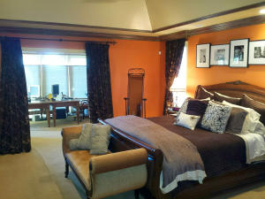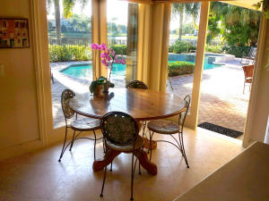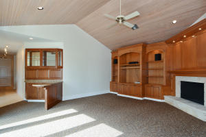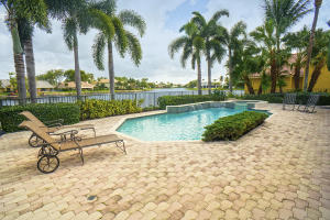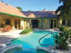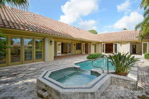 With a freshly painted interior, this 5 bedroom, 6 bath ranch-style estate is crisp & clean and move-in ready! Sited on a SE facing lakefront lot with 4,165 SF of air-conditioned living space that was originally built in 1986 and totally renovated in 2004. Enter into the spacious great room with cathedral ceilings, Jerusalem stone floors and dramatic views of the pool and lake through French doors. The master suite encompasses the south wing of the house, features his/hers baths and walk-in closets plus adjacent 18x10 den/gym. The well-appointed, eat-in kitchen has stainless steel appliances, skylight, breakfast nook and custom marble tile backsplash. The family room features a wood-burning fireplace and built-in shelving. French doors open out to the brick pavered patio.