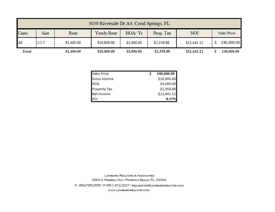 Beautiful 2/2.5 Townhouse in the Heart of Coral Springs close to shoppings, A rated schools, and main highways. All updated with granite tops, newer appliances, tile and laminate floors. Two enclosed patios, 1 in each suite. Spacious rooms and lots of storage space. Washer/Dry and Laundry Room. Great investment, rented for $1,400/ mo. Leased until April 2017. Seller will transfer last and security deposit to new owners.