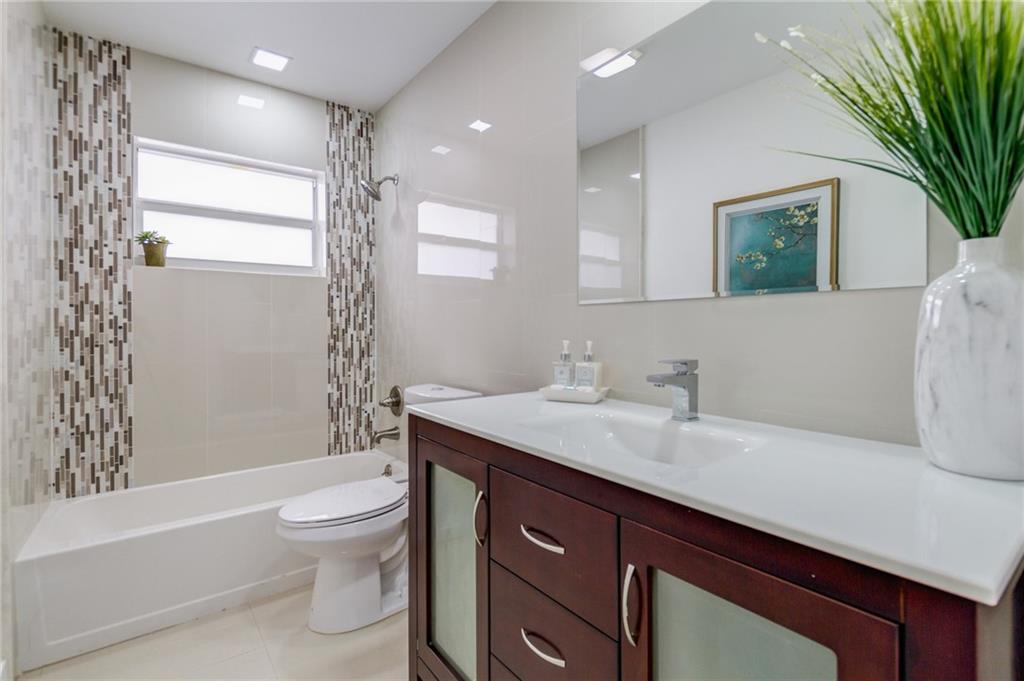 Beautifully Remodeled Coral Ridge Isles Waterfront Home! Featuring direct ocean access and its own dock, this home has a brand NEW barrel tile roof, NEW impact windows and doors, brand NEW kitchen with quartz counter tops and stainless steel appliances. All 3.5 bathrooms have been remodeled with high end finishes as well as electrical has been updated throughout entire home. Also featuring LED lighting, NEW tankless water heater, large circular drive way, paved pool deck and open concept great room!