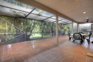 This neighborhood is a hidden gem. The small subdivision off Florida Mango just north of Forest Hill is dotted with well manicured homes and this home is no exception. Nestled under a mature oak tree, this 2-story 3 bedroom home is a great family home. The first floor features a formal living room upon entry, formal dining room, large kitchen that opens to a spacious great room with fireplace, a separate family room (could be fourth bedroom) and half bath. The kitchen and great room look onto a very large 37 foot by 19 foot covered screen enclosed patio overlooking the back yard. This is a great outside entertaining space. Mature vegetation provides a protected and lush backdrop to the yard. The second floor has 2 guest bedrooms and guest bath and an exceptionally large