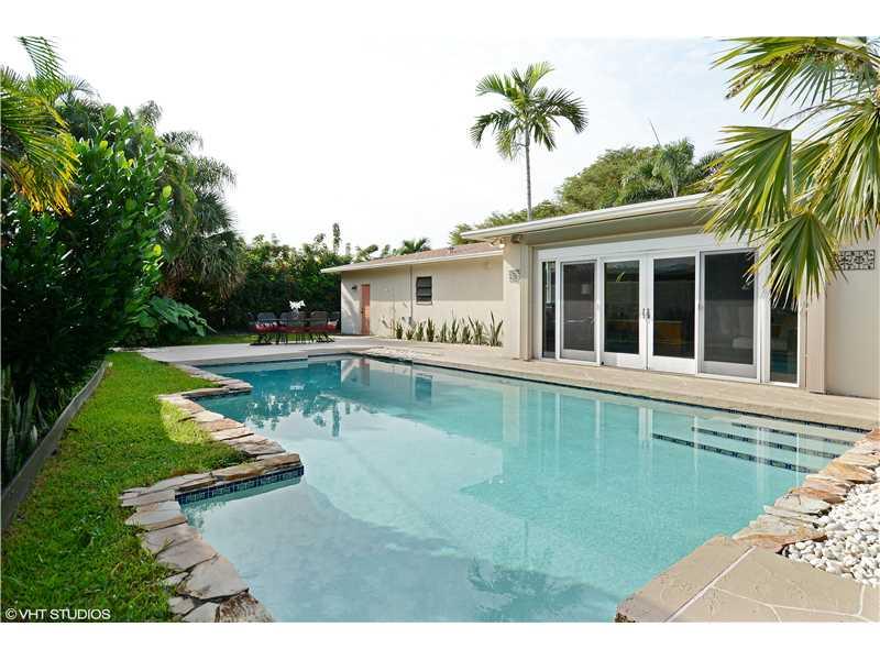 Recently renovated 3BR/2BA classic ranch in Coral Ridge. Open floor plan. New gourmet kitchen. Subway tile backsplash & quartz counters. Stainless appliances. Induction cooktop. Breakfast bar & pantry. Front loading washer/dryer. Beautiful main bath w/new travertine marble floors, "floating cabinets" & quartz counters. Newer AC. Great yard. Large pool. New wood deck & stamped concrete pool surround. Oversized 2CG. Most windows hurricane impact. Close to top rated Bayview elementary, beach & shopping.
