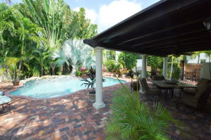 Completely renovated in Prospect ParkThe gracefully preserved original 1926 charm and elegance of this Mediteranean style home now boasts a new custom kitchen, a huge master suite with a lavish marble bath, and a master living area complete with a decorative fireplace as well as hurricane impact windows and doors and a magnificent impcted rated arched top wooden entry door. The beautiful hardwood floors are a work of art. The spacious covered outdoor living space turns the maturely landscaped yard into the perfect get-away where you will enjoy your own huge pool, built-in grill and lovingly restored original iron gates. A long Chicago brick driveway leads back the intricately decorative door of the garage as well as to a circle drive. This location is so close to Intracoastal Petty Par