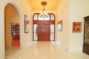 Built upon a premier golf & water location, this beautifully renovated estate with detailed architectural design is exceptional. From the magnificent custom double door entry, you then discover gorgeous marble flooring as well as true Brazilian Cherry. The generous French designed Kitchen features Wolf and Sub-zero with 5-burner natural gas cooking! What you won't see from the numerous photos & virtual tour are Infinity A/C Systems with years left on warranty, UV Systems, Americh Whirlpool & Airbath, Sub Zero Wine Cooler, FULL Hurricane Protection, AUTO GENERATOR. The property and home that has it all & priced to sell. Easily Shown by Appt. Furniture negotiable.
