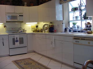 Beautiful lake & golf course views fill this charming 2-story home of 3 bedrooms plus a spacious open loft & 2 1/2 baths featuring volume ceilings & plenty of windows; white tile floors; white kitchen cabinetry; custom window treatments; extra high-hat lighting; newer washer & dryer, water heater & air conditioning and an open patio overlooking the lake & golf course.