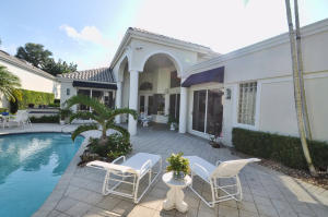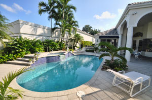 THIS FABULOUS COURTYARD HOME WITH A ONE BEDROOM GUEST HOUSE HAS IT ALL! . 3 BEDRMS, 3 1/2 BTHS, GRANITE KITCHEN WITH OPEN FAMILY ROOM, BEAUTIFUL WOOD FLOORS, HIGH CEILINGS, LIGHT BRIGHT SPLIT FLOOR PLAN,SOLAR HEATED POOL & SPA SET IN A LUSH TROPICAL PRIVATE SETTING WITH BEAUTIFUL VIEWS FROM EVERY ROOM. IMMACULATE MOVE IN CONDITION! GOLF AND TENNIS MEMBERSHIPS AVAILABLE.