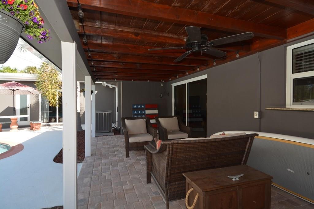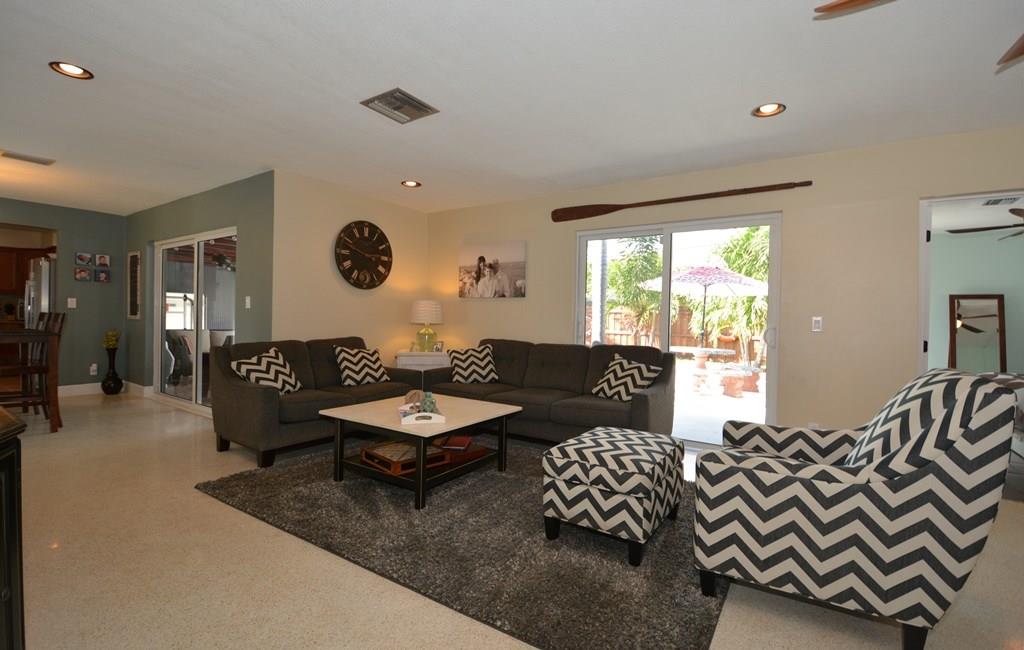Immaculately kept 3/2 with pool. Polished Terrazzo floors with impact windows & doors. Open concept floor plan with updated baths and kitchen. Separate interior laundry room. Tree lined street with side walks. Covered outdoor seating with fenced in yard. Perfect landscaping!