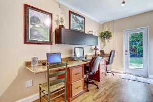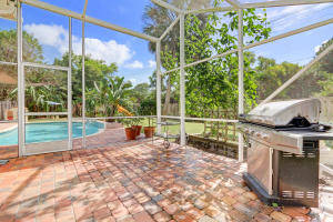 This great 4 bedroom 2.5 bath home sits at the end of the street in a private setting. Rear and side yard back to woods. Beautiful professionally landscaped yard includes, under ground sprinkler system, fruit trees (too many varieties to list), pool with waterfall, paver patio area, and a children's play ground wonderland. The 2 car garage has been partially converted to an office and storage area. It has been designed to easily convert back to a garage should Buyer so desire.The community of Mizner Forest is located in an ''A'' rated school system. A must see.