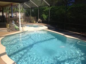 Super spacious, 2 bedroom 2 full bathroom home with open kitchen, screened pool and jacuzzi. Extended roof on the back yard makes this house perfect for entertainment.