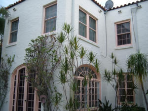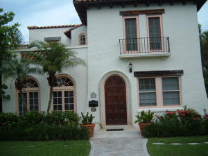 Rare triple lot site. Owners willing to discount price if east lot not included. Main house is a 1924,2 story, Classic Medit, 3 br, 2.5 bath, 2,394 SF with fireplace,wood & tile floors,updated kitchen & master bath,built in dresser in master br,formal dining room,separate laundry room, deck, balcony, patio.The 2 story Guest Building has 3 apartments; 2 units are 2 br/1 bath & 1 unit is a 1/1; total of 2,456 SF of living area; patio,3 car carport, garage/storage. Total living areas of both buildings is 4,850 +/- SF. The site size,zoning,& current configuration allows for expansion or dividing of site. Buyer to check with Planning & Zoning Dept. It is east of Olive, 2 streets west of Intracoastal, between Prospect & George Petty parks.