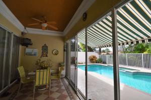 Beautifully maintained and tastefully decorated Home located in gated community of Riverwalk. Community is located 15 minutes from everything that makes Palm Beach County a great place to live including the ocean beach and 5 Stars Resort style amenities! The covered screened entry opens to the foyer leading to the livingroom with a 14" vaulted ceiling and custom built wall entertainment center that opens to the dining area with sliding glass doors to a covered patio. There is additional 3 panel sliding door lead to open in-ground heated pool with SPA and built-in outdoor grill for your family entertainment located directly on end of community lake and corner oversize lot with lush landscaping. There are granite countertops and wood white cabinets with matching appliances in kitchen.