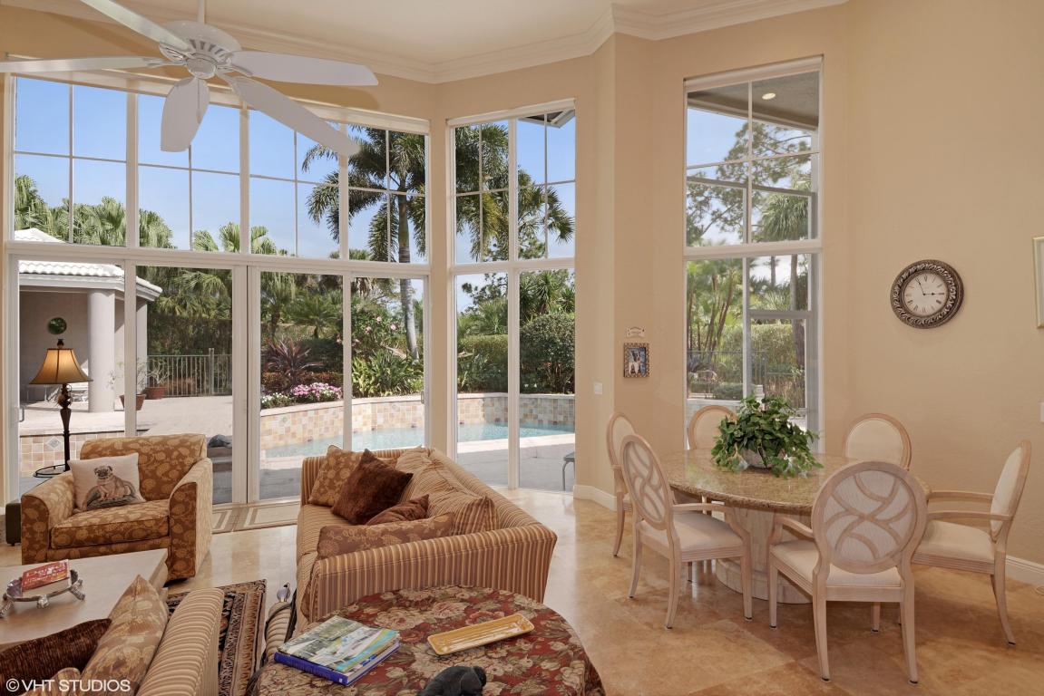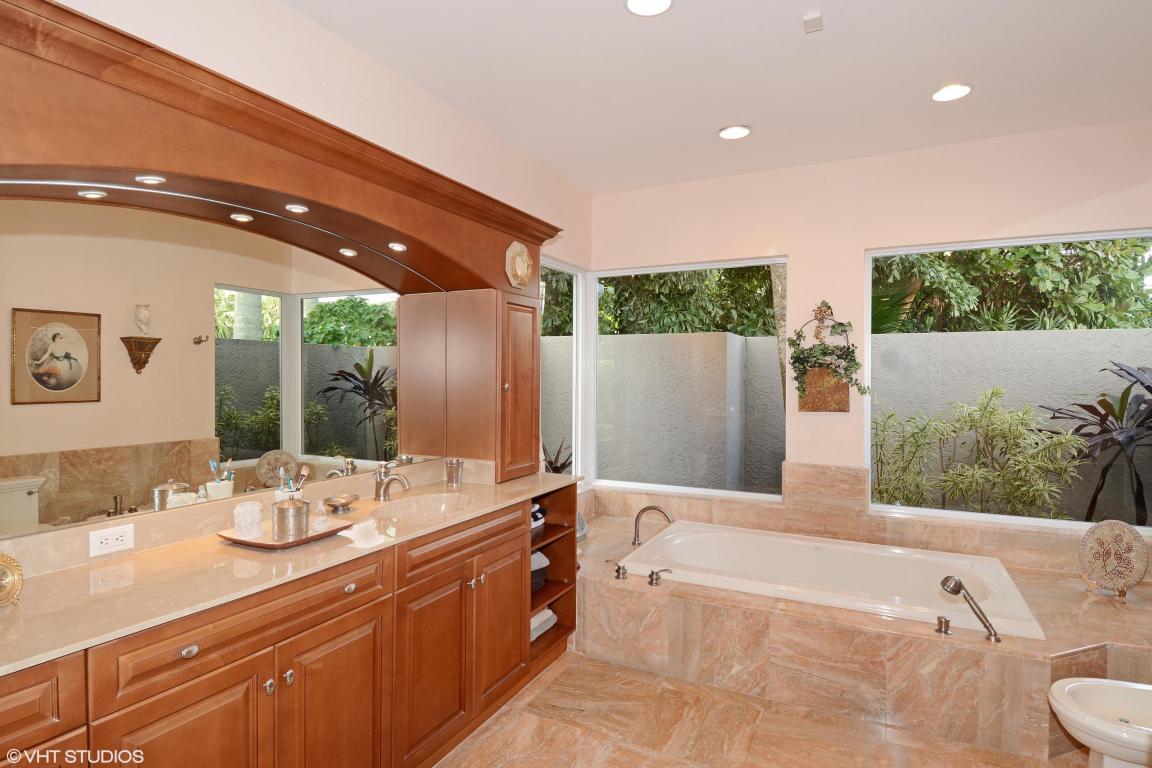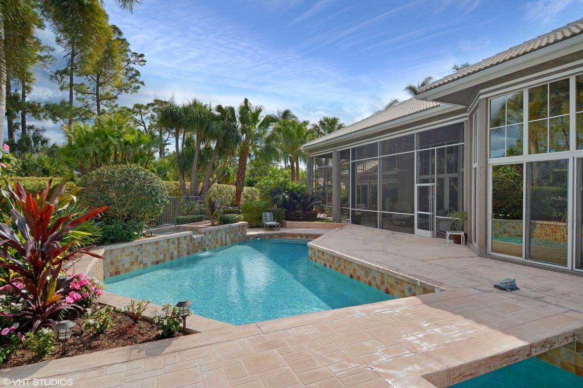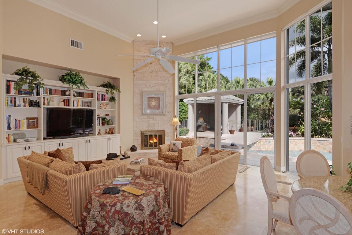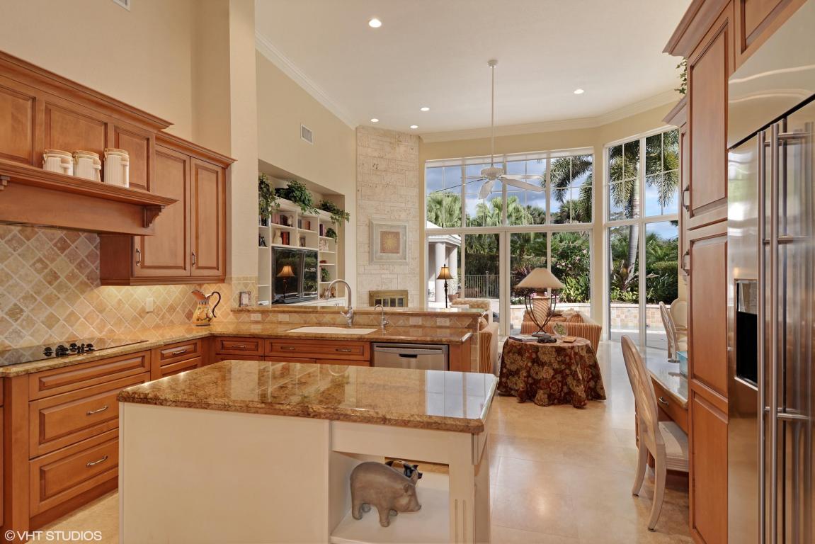 Gorgeous updated Breakers West custom home with all the renovations done! Almost 3,900 AC living area with 3 BR + Office, 3.5 BA, 2 car + golf cart garage situated on 1/2+ acre cul-de-sac lot. Floor to ceiling impact windows throughout + 45KW whole house generator. Travertine marble flooring & volume ceilings in main living areas, crown molding, LED lighting. Beautiful custom kitchen w/center island, granite counters, GE Mono refrig, Advantium oven/microwave & cooktop with vented hood. Family room with stunning floor-to-ceiling coquina stone gas fireplace opens to custom pool and patio. Grand master suite with tray ceiling, abundant walk-in closet storage and HIs and Her marble Master Bath with spa tub and large shower with dual entrances. Nearby Office w/built-in