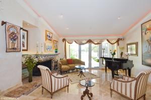 Best views in community.Fantastic views from this sprawling estate home. Backyard area is beyond your dreams with fabulous infinity edge pool, oversized screened patio area, gorgeous waterfront, tennis court and plenty of open space. The floor plan provides for multiple areas of bedrooms and dens to allow for privacy in many areas. The updated kitchen offers a great gathering area adjacent to the family room and eat in kitchen to enjoy looking over the beautiful lake. Other details include 2 fireplaces, marble and granite throughout, a 1,000 gallon propane tank, 36kw generator, newer clay tile roof installed in 2008, accordion shutters.
