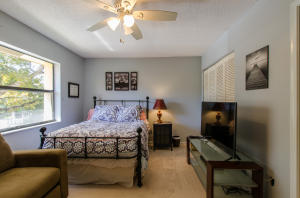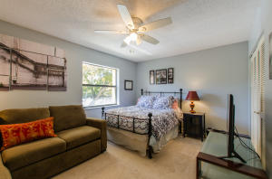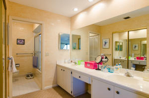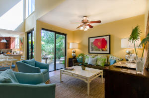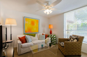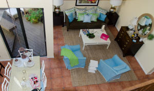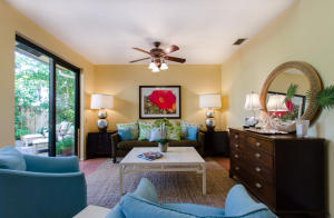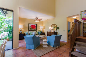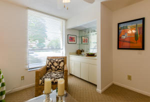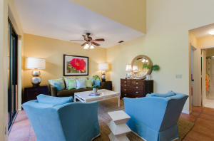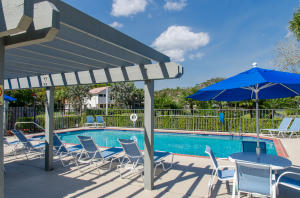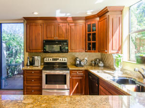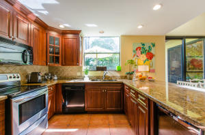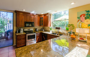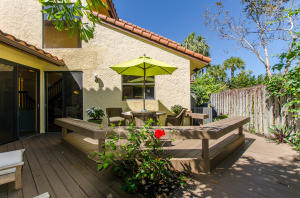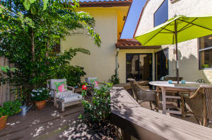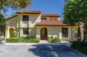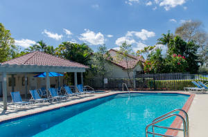 Lovely, spacious townhome,located in a the center of Boca Raton.This unit features an open floor plan,volume ceilings and a custom kitchen complete with a built in wine cooler and granite countertops,perfect for entertaining or rolling out cookie dough! Unit has 3 full baths and organized storage in all closets plus full size stackable washer and dryer. Large Master Bedroom with private deck, walk-in closet and dressing area. Master bath features a Roman tub. Generous second bedroom with bathroom en suite. Third bedroom is on first level and features a wet bar. A private deck and patio provides a lovely garden setting-perfect for winding down after work. Community Pool, 24 Hour Manned security gate. Close to Town Center Mall and easy access to 95 or turnpike. A MUST SEE!!!