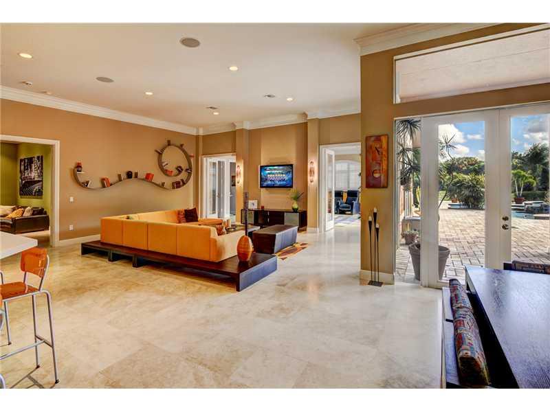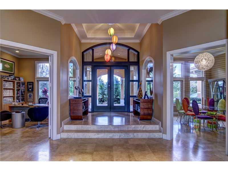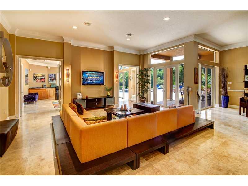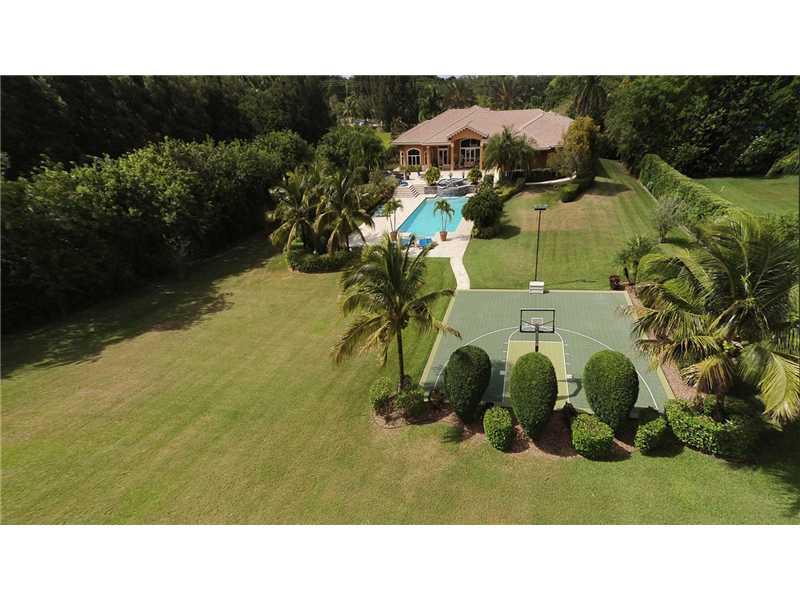 Mediterranean Estate w 20x50 pool on private 2.35 acres w gated bridge access. Architecturally unique w designer accents, modernistic lighting & top fixtures throughout. Features include theater/media room, gym, den/office. Sub Zero & Wolf appliances, mar ble & hardwood flooring, wood plantation shutters. pool/spa w waterfalls & fountains. Covered patio, lighted 1/2 court basketball SportCourt.Impact windows & doors, Niles audio system, whole home standby generator,LED landscape lighting.