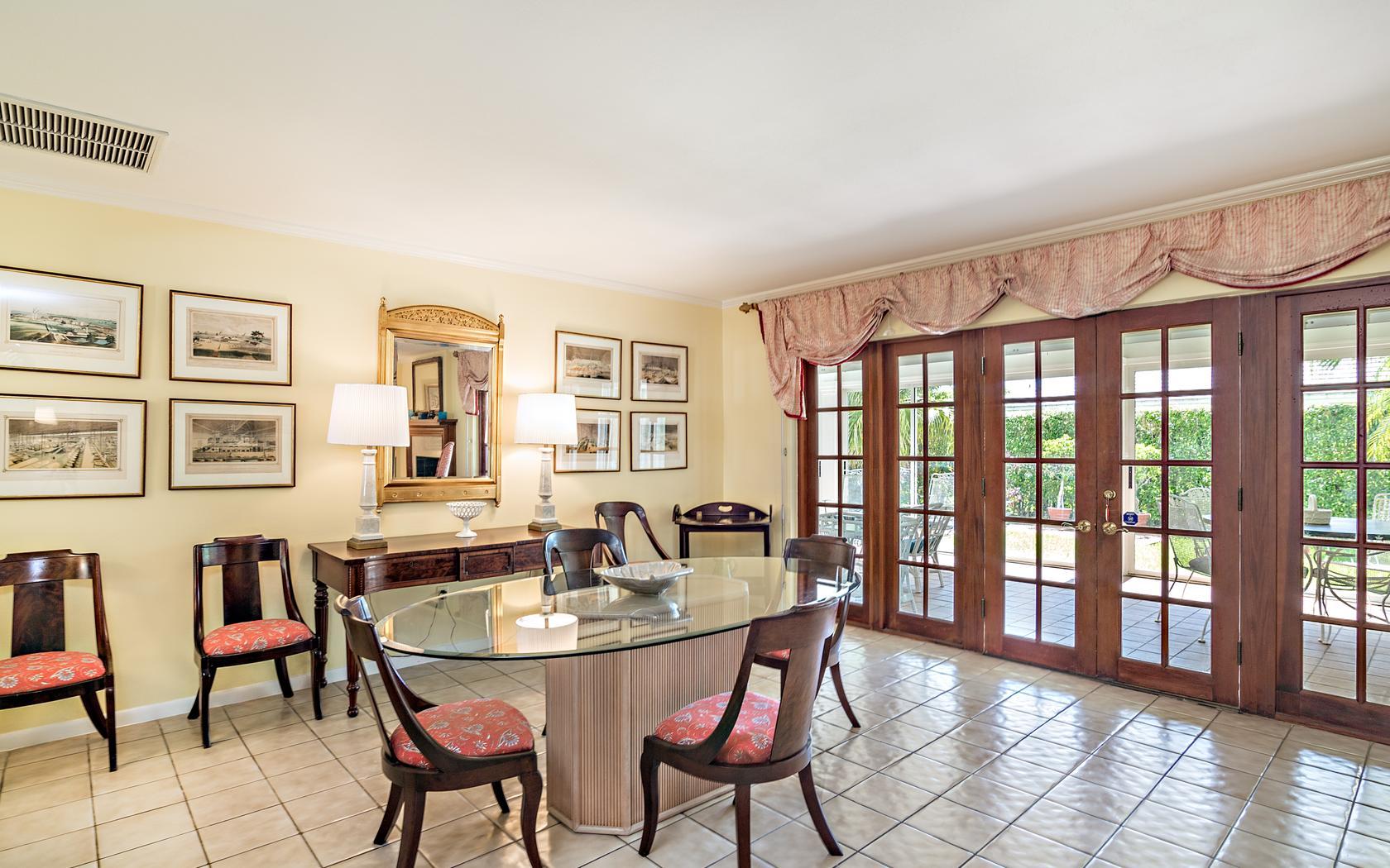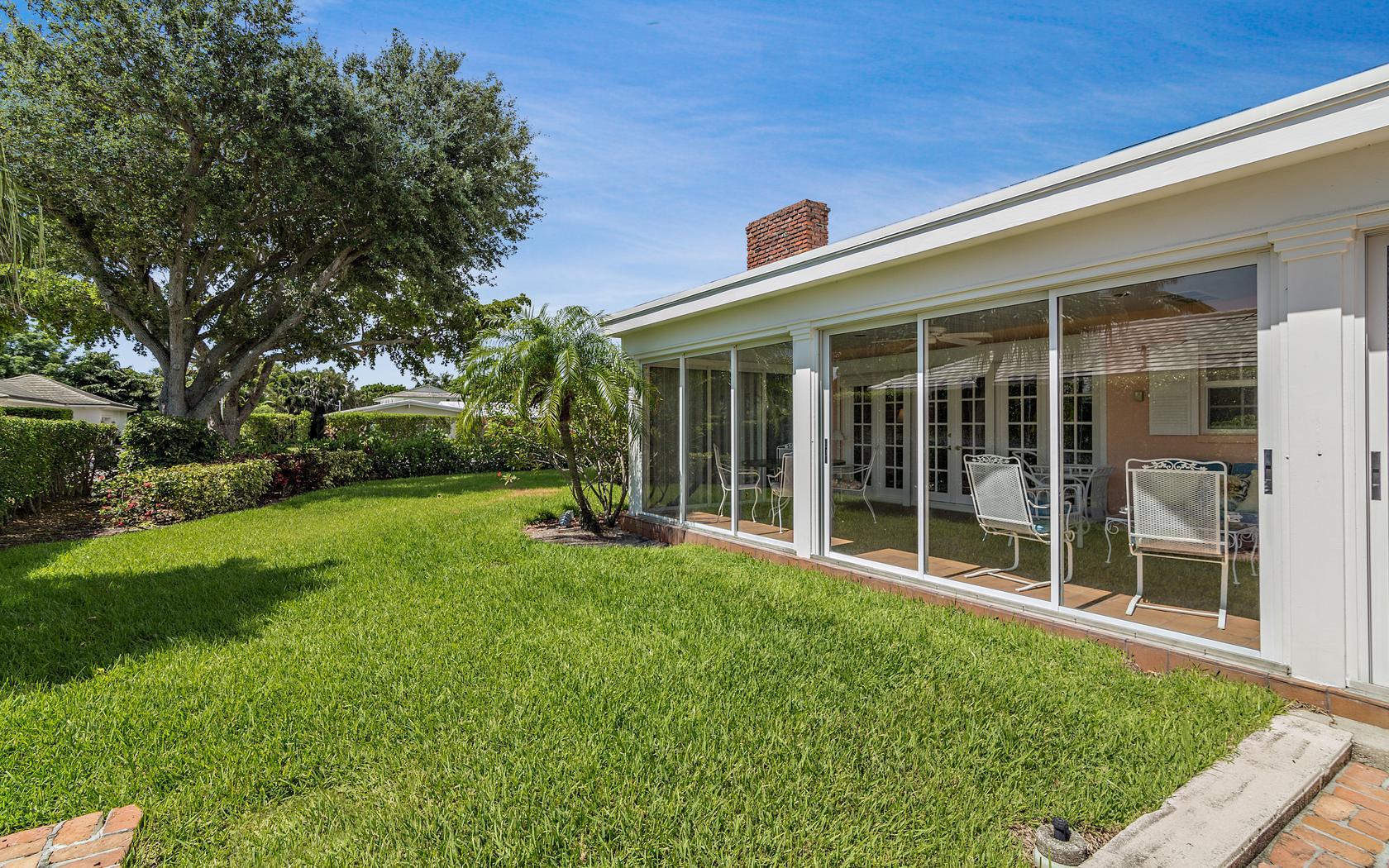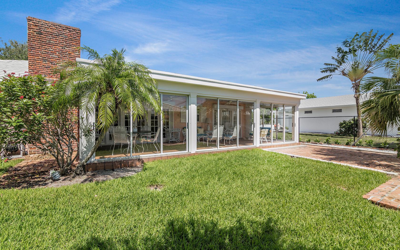 Beautifully maintained 3 bedroom, 2 bath Bermuda style home situated on a large corner lot in the Southend with a 2 car garage. Just 5 houses off the Intracoastal Waterway and Flagler Drive, this immaculate home features a formal entry, large living and dining rooms with French doors to a beautiful glass enclosed Florida room with panoramic garden views. Great kitchen with granite counter tops opens to the family room. Large master suite with French doors and renovated master bath. Split floor plan with two additional spacious bedrooms and bath. 2 car garage with extra storage and plumbing for an additional bath. Beautifully landscaped yard with partial water views. Exceptional value in the Southend.