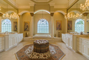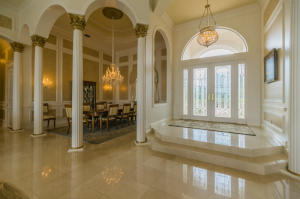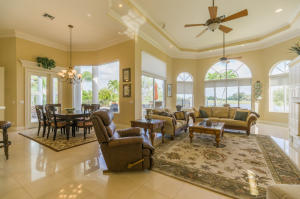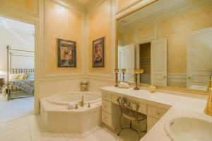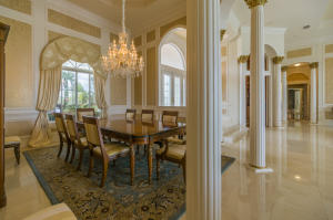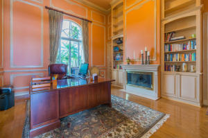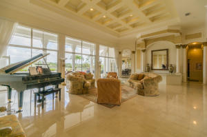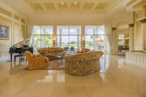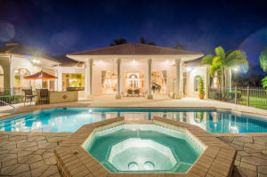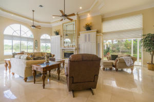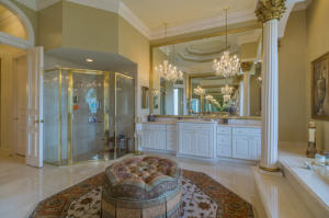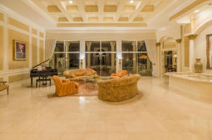 Extraordinarily comfortable, wide-open interior, constructed with the highest quality materials and surrounded by breathtaking water and golf views make this 5BR/5BA pool home, located in the highly sought-after, upscale neighborhood of Bay Hill Estates, stand out from the rest. This luxurious, bright & expansive house, ideal for entertaining, is full of top-of-the-line features, such as soaring double-coffered ceilings throughout, an 18-box coffered ceiling in the living room, marble and hardwood flooring, huge master suite with a large bay window and royal master bath, two fireplaces, gourmet kitchen with stainless-steel appliances and a double refrigerator and freezer, solid core doors, triple crown molding, decorative wall moldings, massive loggia, and an Olympic-sized heated pool.