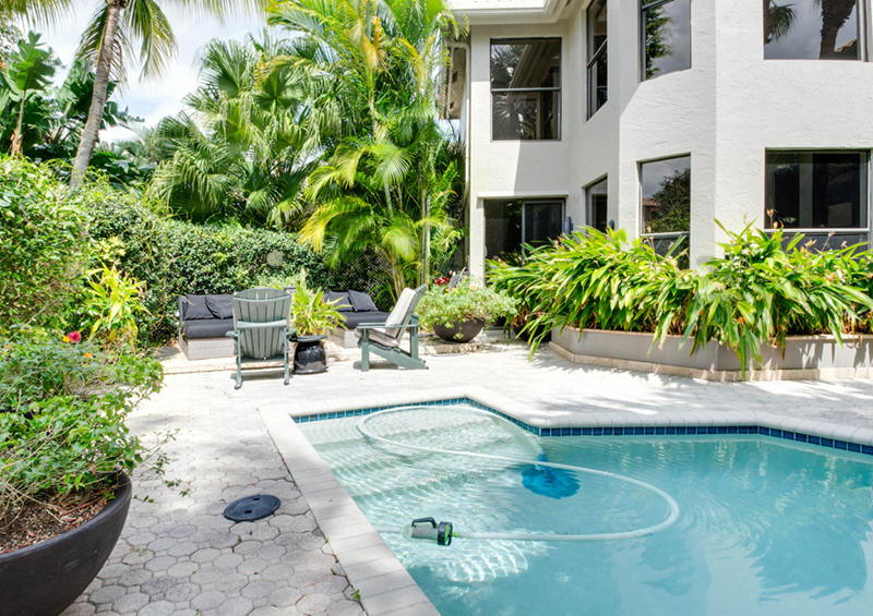 $50k PRICE REDUCTION.....this house has it all...light, bright, airy...remodeled (not just redecorated) new and perfect...ground floor huge master and fabulous private 2 bedroom guest suite up...recessed halogen lighting throughout..european cabinetry..white porcelain (almost seamless) floors...tropical paradise in yard complete with in-ground heated pool on the most secluded private lot...easy to show...don't forget to check out virtual tour..