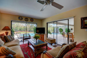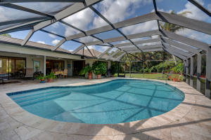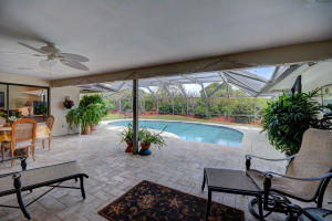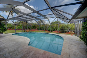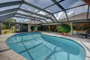 True Florida living where every room looks to nature and the tropical environment becomes part of living. Light pours in from 6 sliding glass doors and windows that reach almost to the floor. A graceful gated patio opens to pleasing a gallery type foyer and white tile floors through all living areas. Bedrooms feature distressed bamboo plank floors. The kitchen with 42'' cabinets, granite counters & stainless appliances is completely open to the family room. All except 2 bedrooms open to an expansive covered/pool deck of white travertine, inviting relaxation and entertainment.This home features spacious rooms and ample storage closets. The oversized pie shaped lot offers plenty of play area and no rear neighbor. Low How fee is $200 yearly plus $130 to Boca Del Mar Association