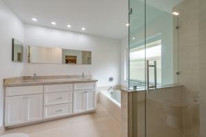 Don't miss this totally renovated designer home with new high end finishes!! IncludingSolid maple kitchen & bathroom cabinets, with soft close drawers, granite island & countertops. Hand-painted glass mosaic backsplash. GE Profile stainless steel appliances, Bosch Dishwasher, Blanco sink. Bamboo & porcelain flooring throughout. Bathrooms have solid cabinets, quartz counters and beautiful finishes. Master bath is highlighted with Porcelanosa tile, a walk in seamless shower, overhead rain shower and separate soaker tub. LED lighting & fans add a modern flair. Even laundry room is special with a light oversized interior space. French doors lead to a private patio with no view of your neighbor. Impact windows provide hurricane protection & sound proofing to this bright open floor plan.