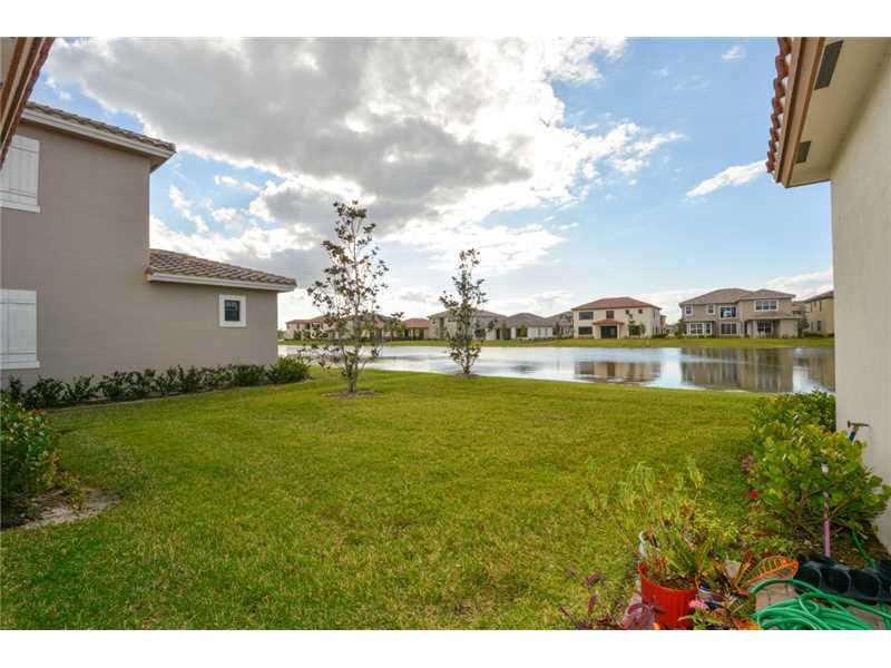 Ready to go in Mira Lago! Better than new construction! NO BUILDER FEE! This 4 bedroom, 3 bath Caspian model on water has granite countertops, stainless steel appliances, gas cooktop, gas water heater & gas dryer. Impact windows & doors. 3 car garage. Ma intenance includes lawn care. New state-of-the-art clubhouse opening Memorial Day. A-rated schools.