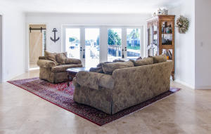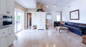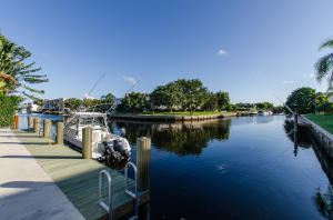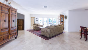 Long canal views greet you as you enter this waterfront deepwater property with no fixed bridges and gorgeous dock to accommodate up to a 50 foot boat. Dock equipped with water and electric and offers a beautiful place for your yacht right outside your door. The home has been renovated including impact glass, travertine totally throughout and newer AC. The home is set up for a generator with a quick attachment and the dryer, range, hot water heater and barbecue are all gas. A fabulous home to weather a storm while enjoying a spacious and beautiful interior with expansive water views. This home flows so beautifully it is really ideal for entertaining or exceedingly comfortable family living.