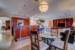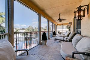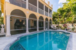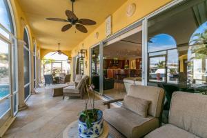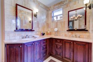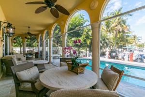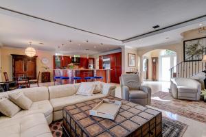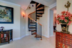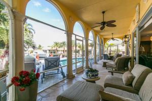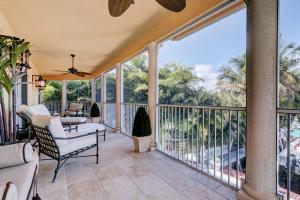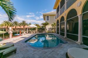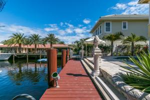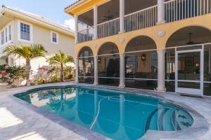 This Mediterranean style three-level, mint condition home consists of 4 bedrooms, 5.5 baths, den, private pool and 3 car garage and it is equipped with its own elevator! Sale includes **HOME WARRANTY***! It sits on a prime north-facing intracoastal canal lot which provides a long view of the water seen from each room on each level! All doors and glass are impact-resistant while custom window treatments accompany each of the sliding doors. A private saltwater pool sits parallel to the blue intracoastal waters just outside the screened patio. All flooring on the first and second levels consists of Jerusalem marble, while flooring on 3rd level is newly installed tile, inside and out. Upon entering the dramatic front door, there is a formal foyer from which there are breathtaking water vi