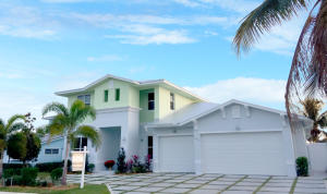 Pristine, newly constructed, Key-West style waterfront property with deep-water dock and easy access to ocean. Built in 2012, this home offers 4 BR, 3.1 BA, optional 5th bedroom/office and a 3-car garage with a well-designed floor plan and upgraded finishes throughout. The 20' x 16' gourmet island kitchen boasts granite countertops, butler pantry, wet bar, and stainless steel appliances. The first floor master suite features coffered ceilings, French doors leading to the pool and boat dock, walk-in closets, spa tub and large separate dual shower. The custom hardwood staircase leads to the expansive loft area, 3 additional bedrooms and 2 full bathrooms. The rear facade offers a spacious covered patio, pool, and fabulous summer kitchen.