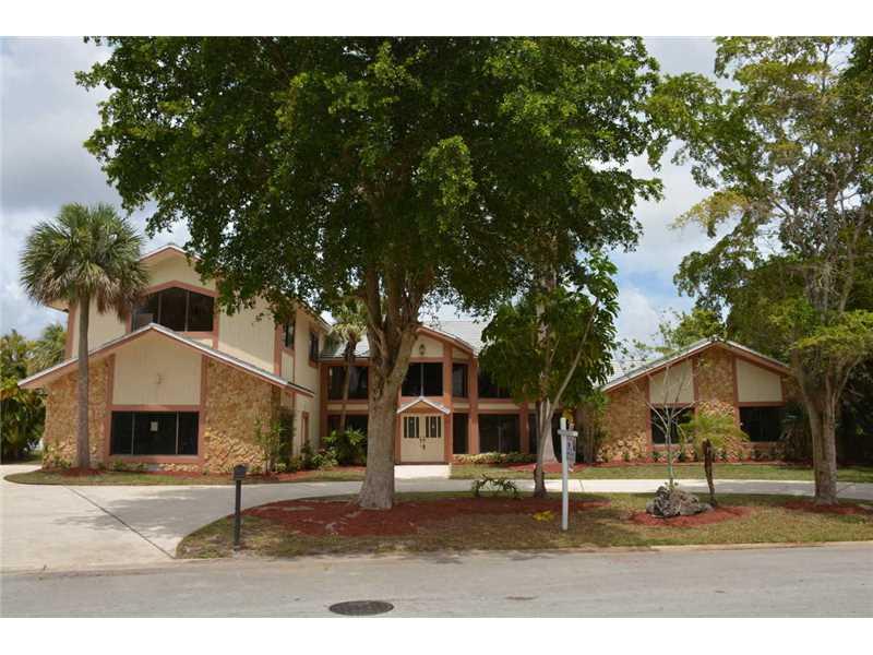 Estate style home in heart of Coral Springs. 4bd/4ba downstairs with 1bd/1ba + loft access off 3 car garage. New roof. Volume tongue & groove ceilings, conversation pit, copper wood burning fireplace, wood/ marble/ tile flooring, new carpet in beds. Large screen patio overlooking remote pool and park like setting. 2/3 acre corner lot surrounded by water on 2 sides. Wood frame construction. Some repairs required. No HOA. This is a Fannie Mae Homepath property.