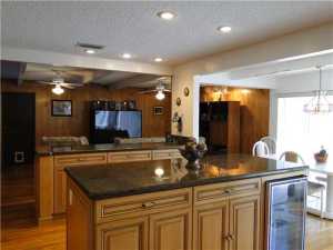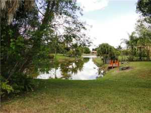 Spanish style home on expansive waterfront lot! Completely private lot on gorgeous canal. No rear neighbors. Renovated kitchen has it all! Gorgeous granite counters and backsplash, beautiful wood cabinets with storage for everything. Insulated real hardwood flooring in main part of the house. Home boasts formal dining room, living room, family room AND huge bonus/media room with brick fireplace! Great for entertaining. High hat lighting, lots of natural light. Roof installed in 2007. Separate 3 car garage has covered walkway to main house. Solar heated hot water heater. Split bedroom floor plan. Gated courtyard for additional parking. Over one acre of sprawling land to enjoy!