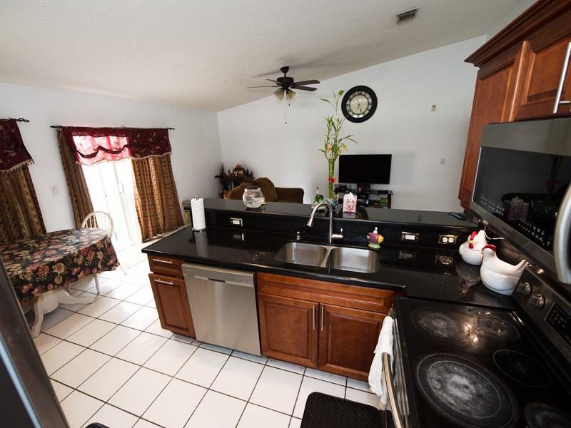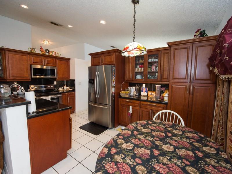 Come view this Large 3 bedroom 2 bath 2 car garage Split Open Triple Split Floor Plan w/ Vaulted Ceilings & fenced in yard Single Family Home in the Sought after Community of Chapel Trail II. Home features, Newly Remodeled Eat in Kitchen w/ Wood Cabinets, Granite Counters, Backsplash & Stainless Steel Appliances. New Front Load Washer & Dryer Inside not in Garage. New A/C Replaced in 2012, Accordion Shutters on all Windows and Doors. Tile Flooring throughout in all living areas. See More view our 3D Tour!