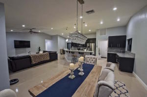 Look no Further. East Boca Completely Renovated in 2015. This Open Floorplan concept boosts a Contemporary Kitchen, Samsung Stainless Steel appliances, granite counters, and wet bar. Enjoy Porcelain floor throughout entire home. This Reno includes new High hate lighting, New interior doors, New Roof, Hurricane Impact windows and Doors, AC, Fencing and Landscaping. New Bathrooms offer stylish free stand vanities, glass deco tiles, contemporary lighting and fixtures. The exterior updates include Marble walk way & decking, updated pool & new equipment. DINING RM CHANDELIER EXCLUDED.