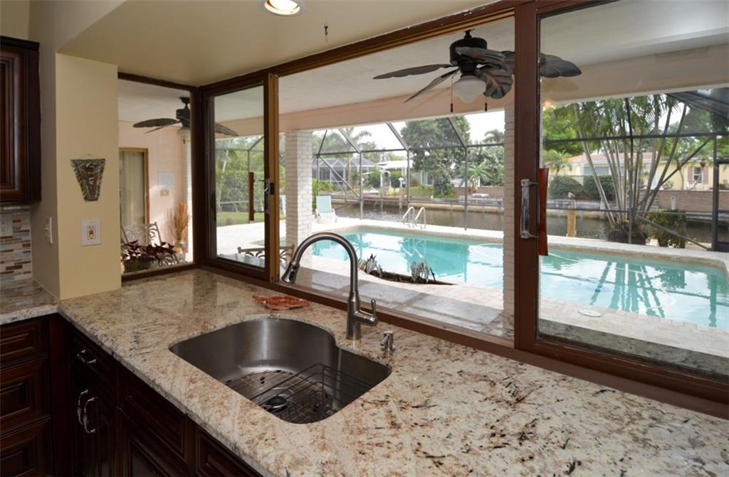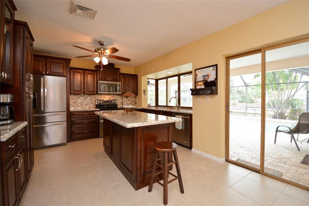 One of the most desirable streets in the Ocean Access neighborhood of Plantation Isle. Popular split bedroom floor plan with totally remodeled Stainless Steel & Granite Kitchen & Granite & tiled baths...See photos & virtual tour! South Easterly breezes on oversized covered patio & domed screened pool deck, large lot on Oak lined cul-de-sac street. Many glass doors look onto 34'x12' cover patio, pool, and waterway. Perfect for entertaining. Property has desirable 4th bedroom & Family room...